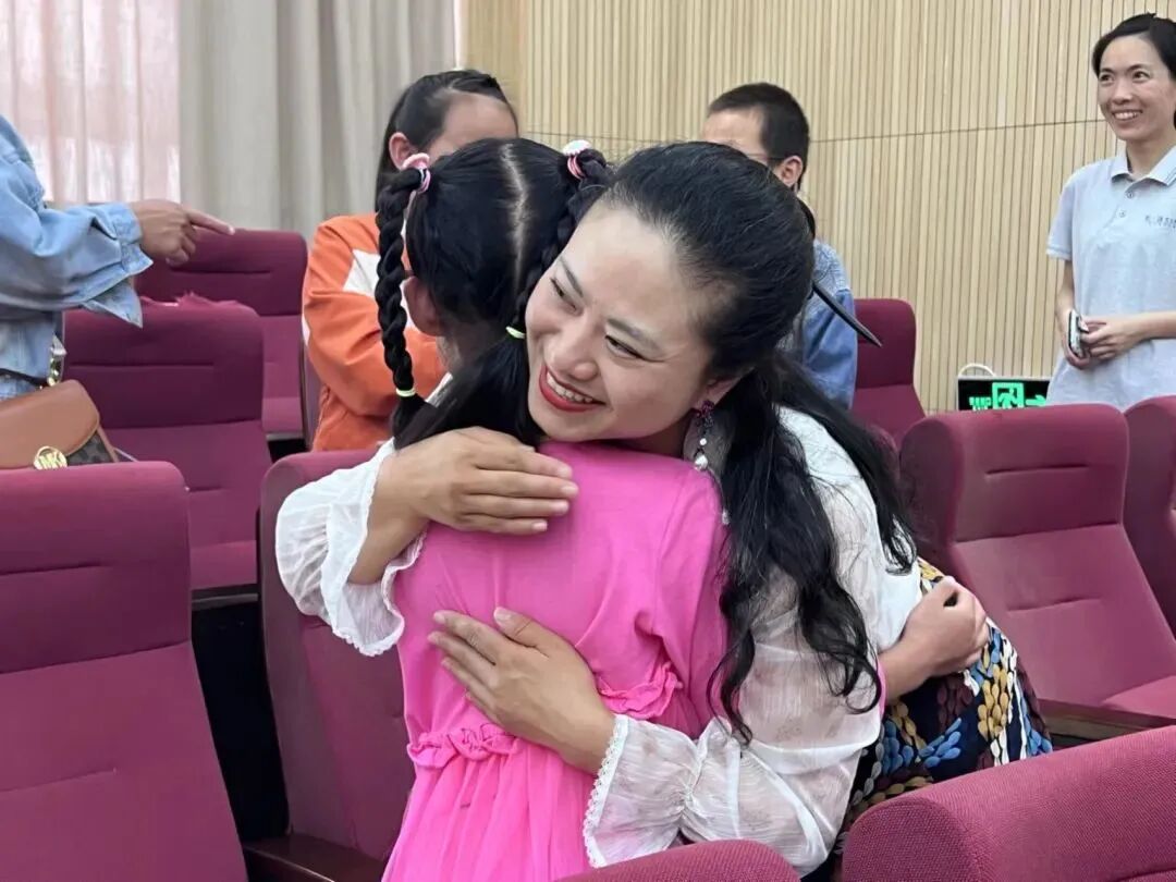 除了学习国学经典之外,丁进还教授了父母子女之间相处的“智慧之语”, 倡议父母和子女可通过拥抱来传达彼此之间的爱意。听完丁进老师的建议之后,现场观众朋友们纷纷实践了起来。
