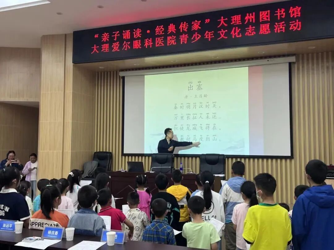 8月6日上午,朗朗书声从大理州图书馆新馆二楼的报告厅中传出。为弘扬国学文化经典、丰富孩子们的暑期生活,大理州图书馆联合大理爱尔眼科医院举办了“亲子诵读·经典传家”青少年文化志愿活动。