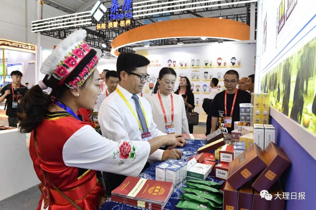 “主打产品是什么,一年的产值有多少?”在生物医药和大健康馆,陈真永沿着各个展位边走边看,与参展企业人员交流了解情况。他强调,大理的中医药和大健康产业具有较好的基础,要在医养结合上下功夫、寻突破;医药企业单一主打产品的抗风险能力较弱,要加大对创新药的研发力度,利用好南博会这个平台,加大市场推广,让好药品惠及更多患者,并取得更好效益。