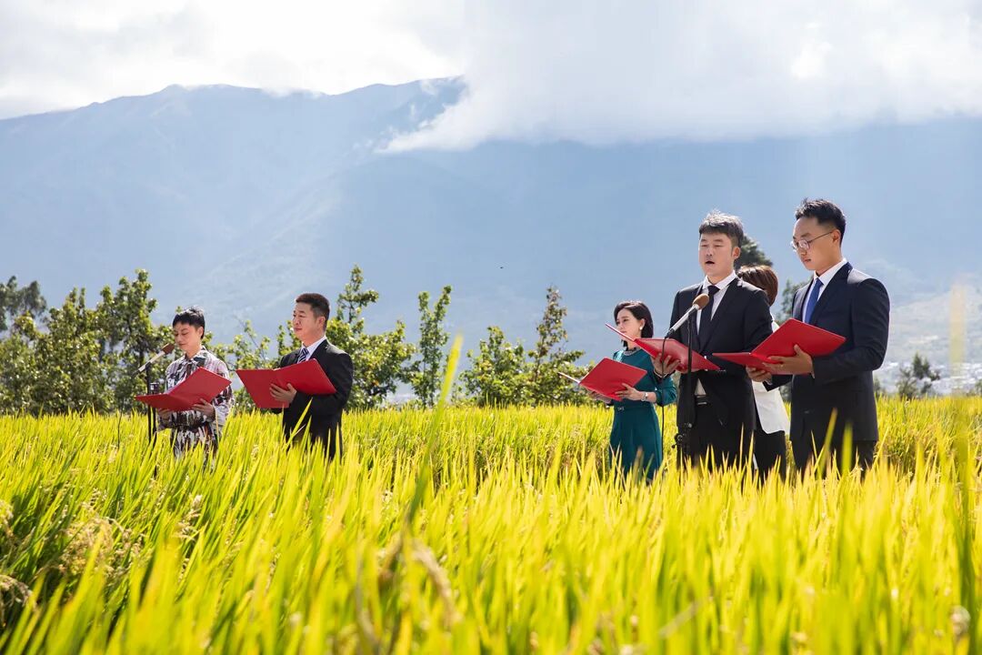 10月9日,由云南广播电视台交通之声、云南私家车电台策划的霞客金风·岁稔年丰—— 大理洱源凤羽“丰收节”主题诵读分享会在洱源县凤羽镇空中稻田剧场成功举办。