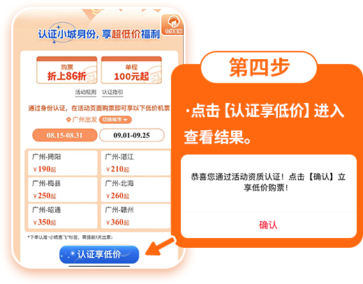 即日起至12月31日,只需通过身份认证,购票即可享一口价或者机票折上折优惠~