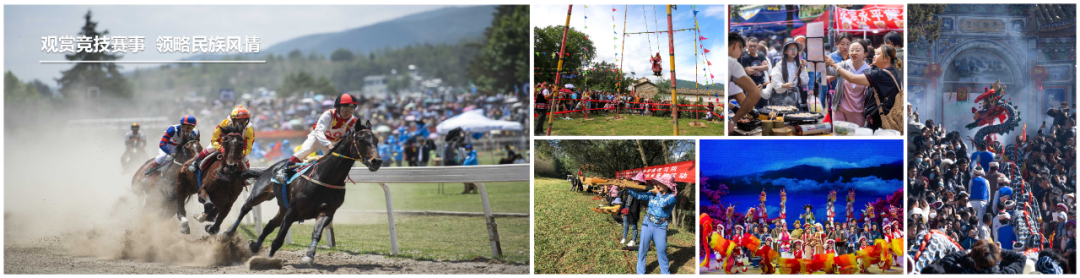 跨越千年的民族盛会——三月街赛马会。三月街赛马会已有1300多年历史,涵盖了传统赛马、龙舟、射弩、打陀螺等民间体育比赛以及民族歌舞表演、民间贸易集市等消费业态,现有的“三月街赛马会”品牌是大理旅游与民族体育融合发展的重要载体,一定能让您在观赏竞技赛事的同时领略到民族风情的独特魅力。