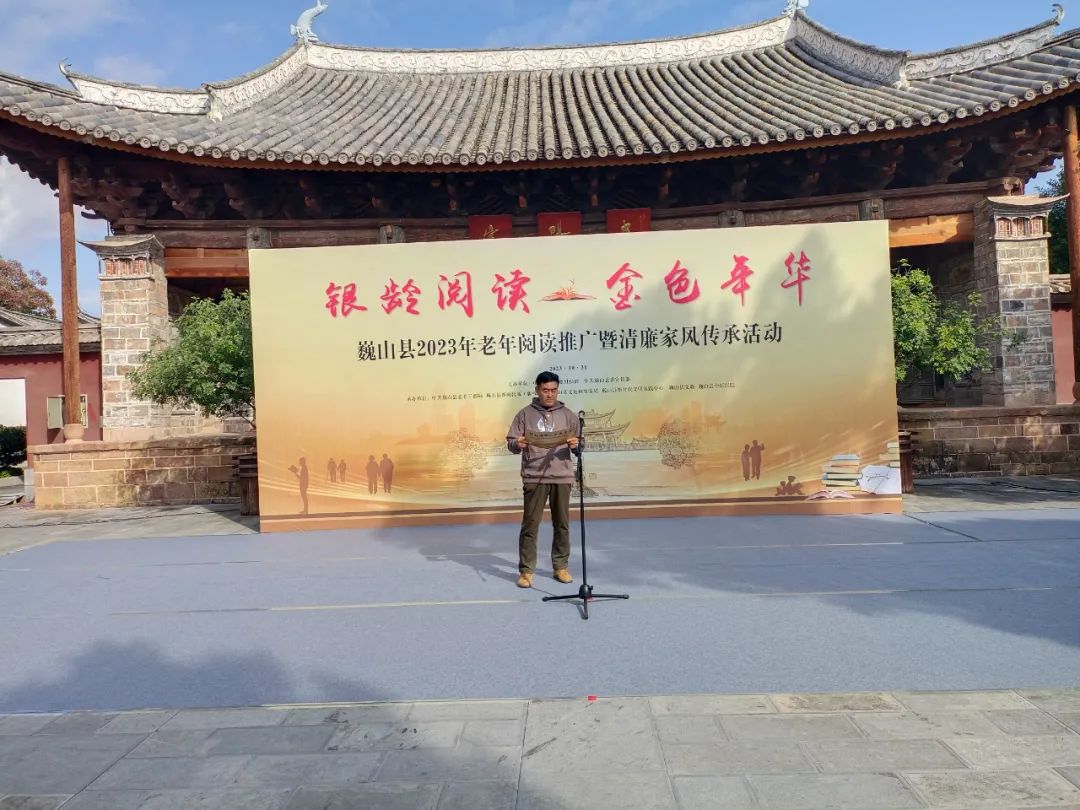 10月31日上午,巍山县2023年“银龄阅读—金色年华”老年阅读推广暨清廉家风传承活动在南诏博物馆举行。此次活动由巍山县委组织部、县委宣传部主办,巍山县委老干部局、巍山县新闻出版(版权)局、文化和旅游局等部门承办,巍山县委常委、组织部部长徐必祥等领导出席了活动,县孔子学会、县作家协会等会员代表,县老年大学学员等共100多人参加了活动。