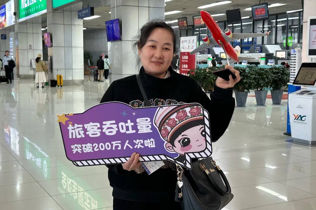 第200万名乘客梁阿姨表示,见证了大理机场年旅客量首次突破200万人次,感觉特别幸运。作为大理本地人,同时也见证了大理机场里程碑式的发展,希望大理民航事业发展越来越好,航班越来越多,老百姓出行越来越方便。