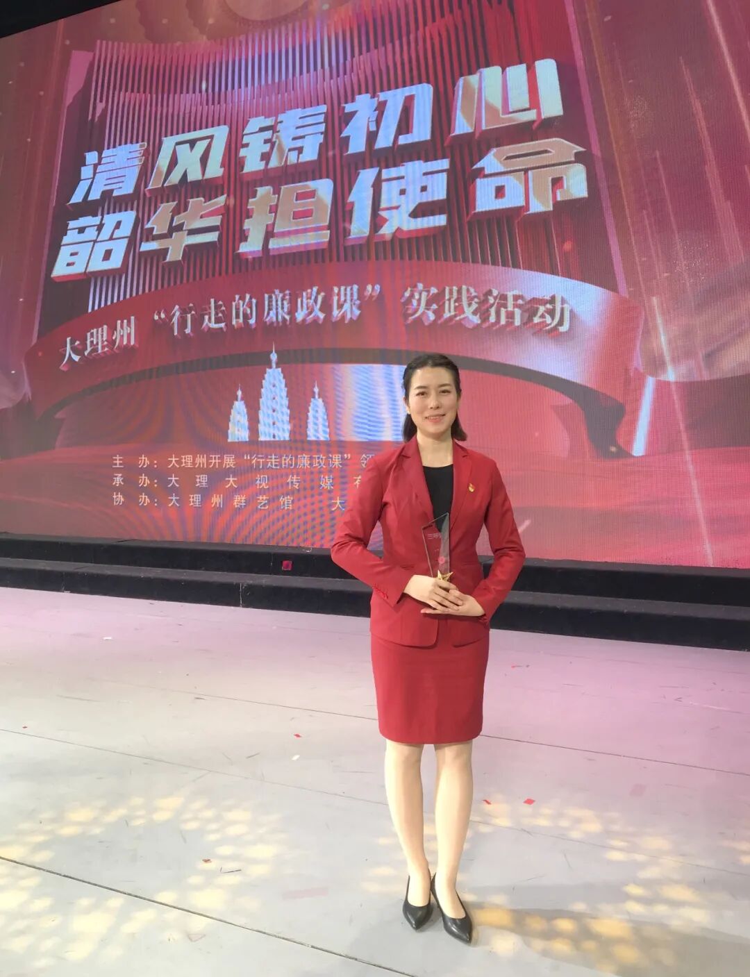 11月28日,大理白族自治州以“清风铸初心 韶华担使命”为主题开展党员干部同上一堂“行走的廉政课”实践活动,并举行“金话筒”讲师决赛及精品课颁奖。大理州博物馆讲解员杨枫荣获“行走的廉政课”金话筒讲师评选三等奖。