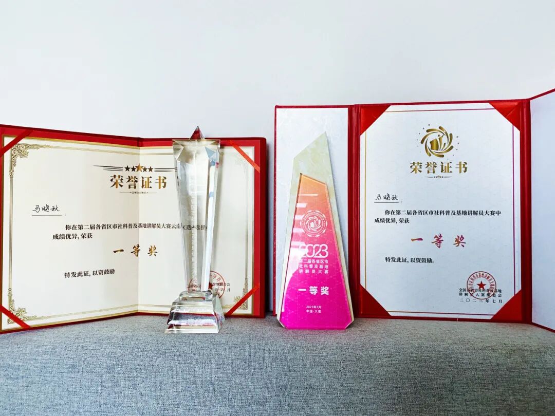 大理州博物馆持续推进人才培养,打造一支高素质、高水平的讲解员队伍,积极选派讲解员参加业务技能培训,组织讲解员参加各项讲解比赛,并在比赛中取得优异成绩。马晓秋参加第二届各省区市社科普及基地讲解员大赛荣获一等奖,代表云南参与各省区市社科联主办的全国社科讲解大赛,荣获全国一等奖;何七美参加大理州第四届科普讲解大赛荣获二等奖及最佳形象奖,参加大理州直机关工委开展的“我们的承诺”党建微视频大赛,报送视频《追梦路上“三双鞋”脚踏实地跟党走》荣获三等奖;杨枫参加州委宣传部主办的全州“行走的廉政课”金话筒讲师评选,荣获三等奖;张亚敏参加由大理州国家安全人民防线建设领导小组组织举办的“我和新时代国家安全“2023年度大理州国家安全人民防线宣讲大赛,获得优秀奖;马晓秋参加首届“融美云南 道物中华”文物讲解邀请荣获专业组第二名。