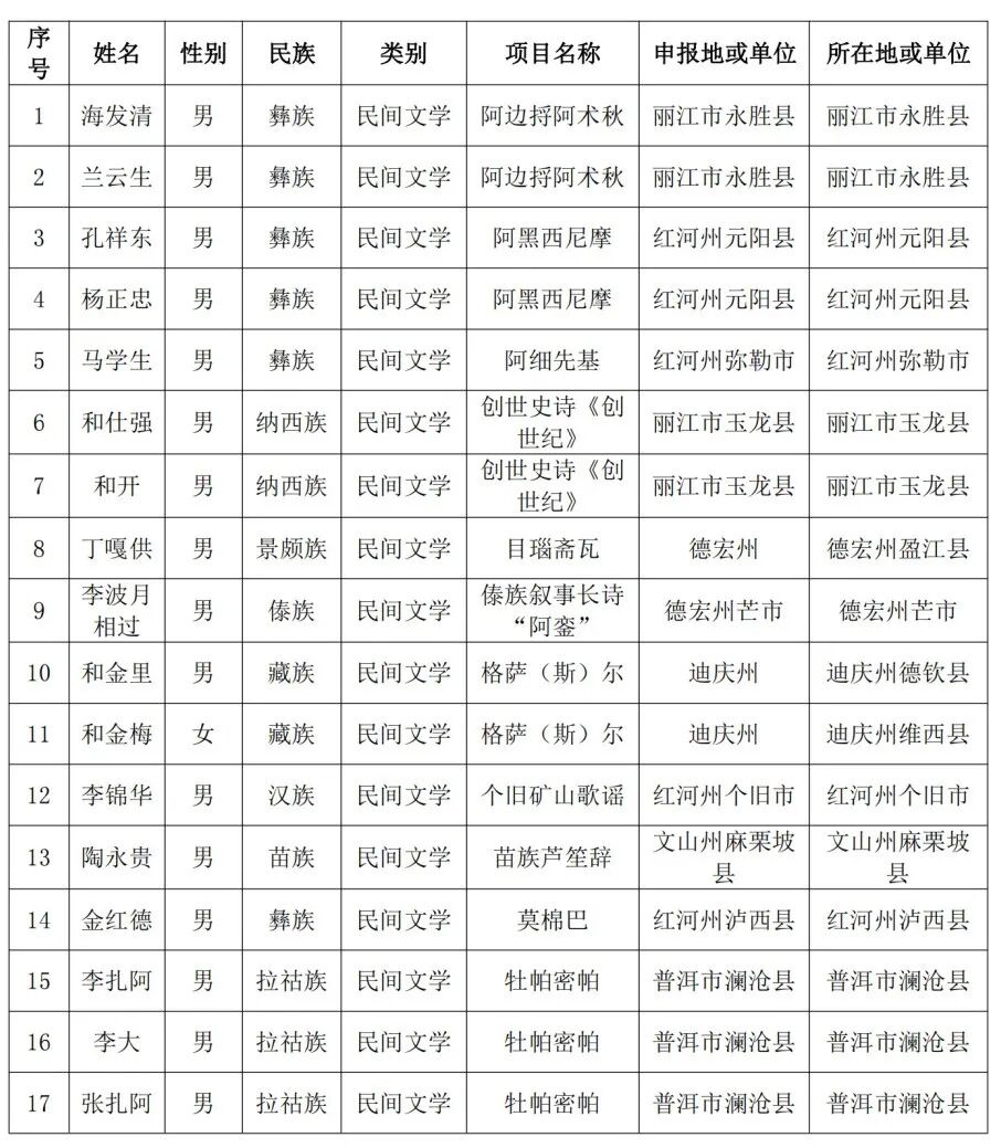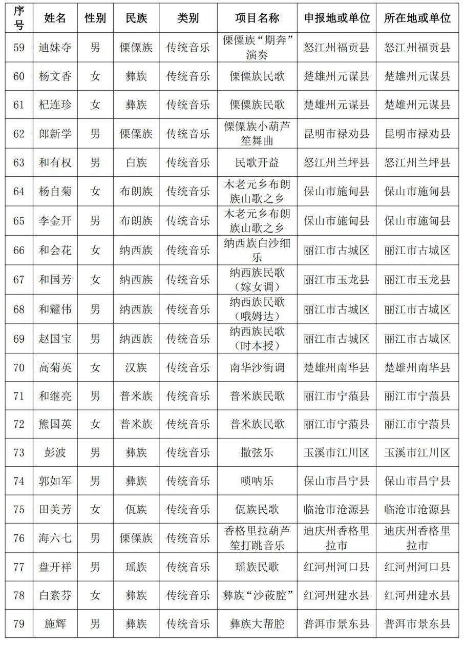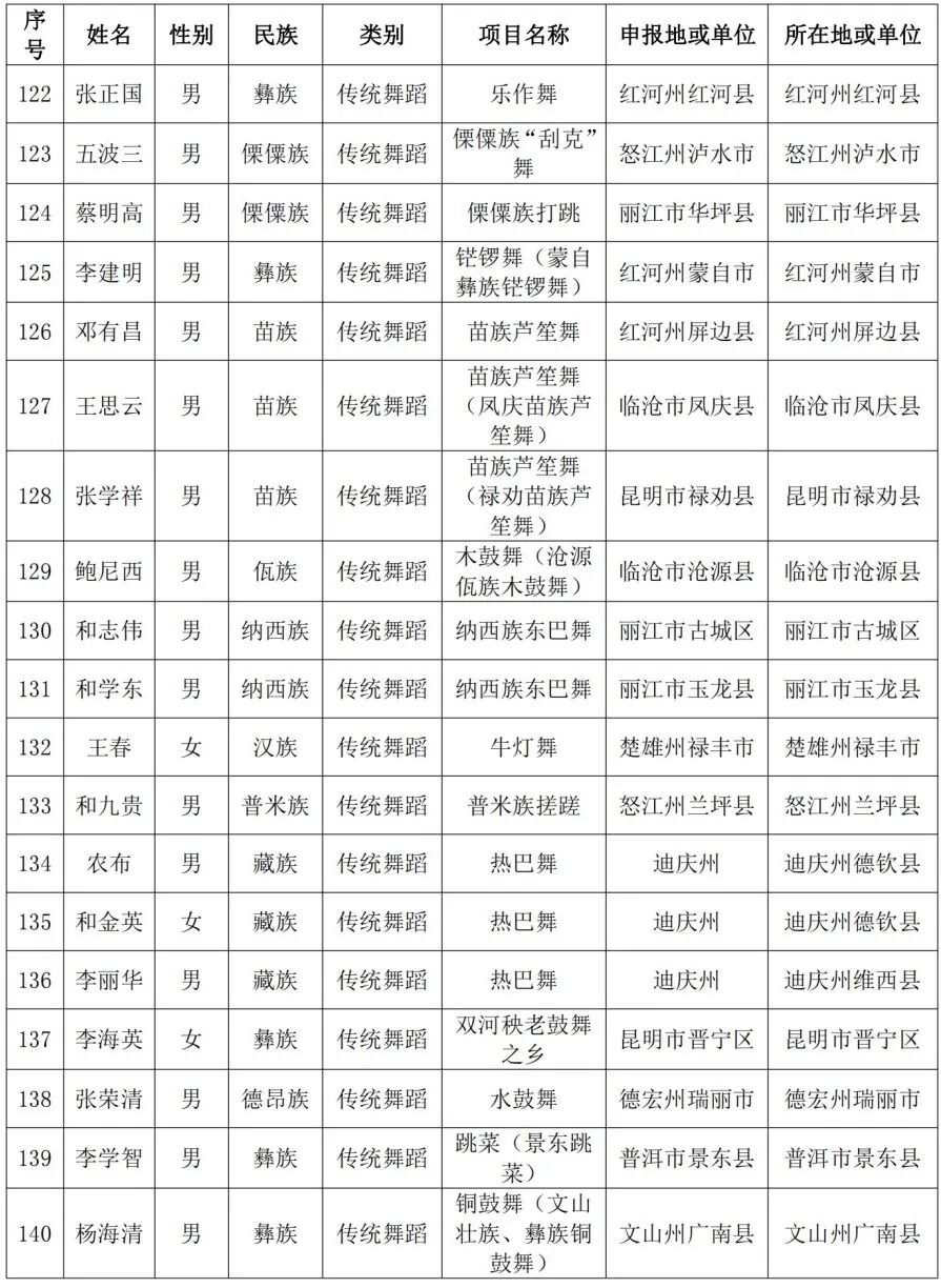 云南省文化和旅游厅办公室关于第七批省级非物质文化遗产代表性项目代表性传承人推荐名单的公示