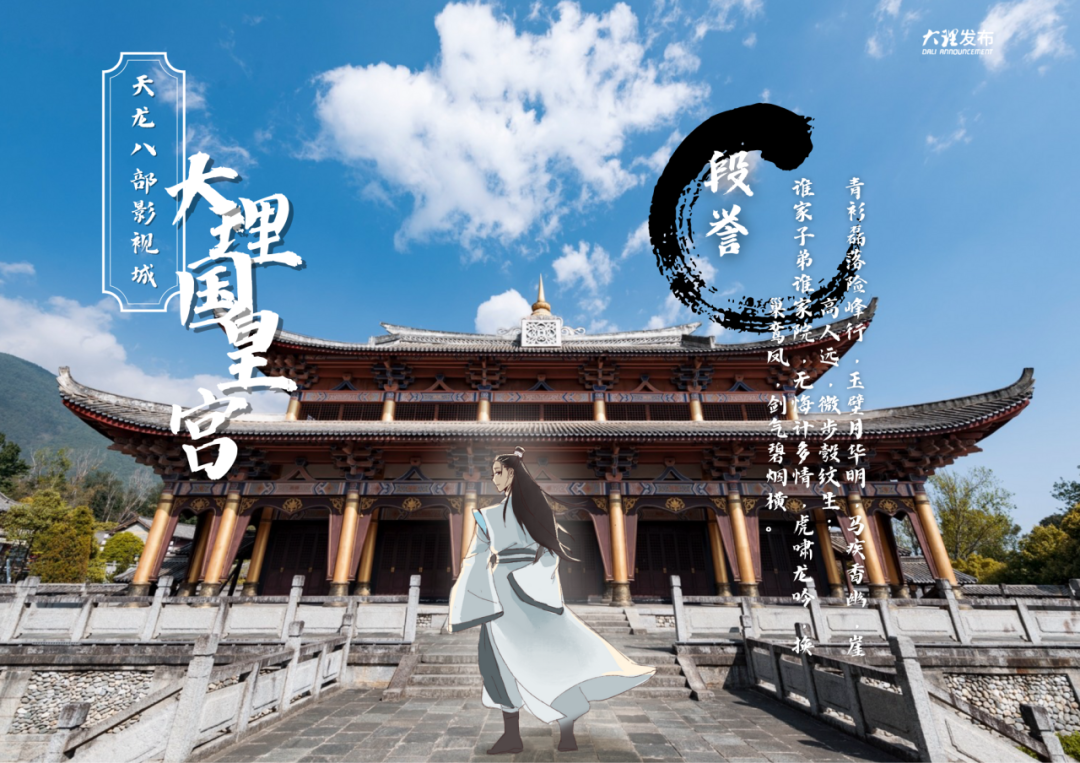 天龙八部影视城坐落在透迤起伏的苍山十九峰下,是2002年电视剧《天龙八部》的拍摄基地,占地274亩,按照“大理特点、宋代特色、艺术要求相结合的原则进行规划、设计,将影视拍摄与旅游文化主题相结合。天龙八部影视城是展示宋代大理国、西夏、辽国等历史文化的大型主题公园,城门上“天龙八部”几个字由金庸先生亲笔题写。