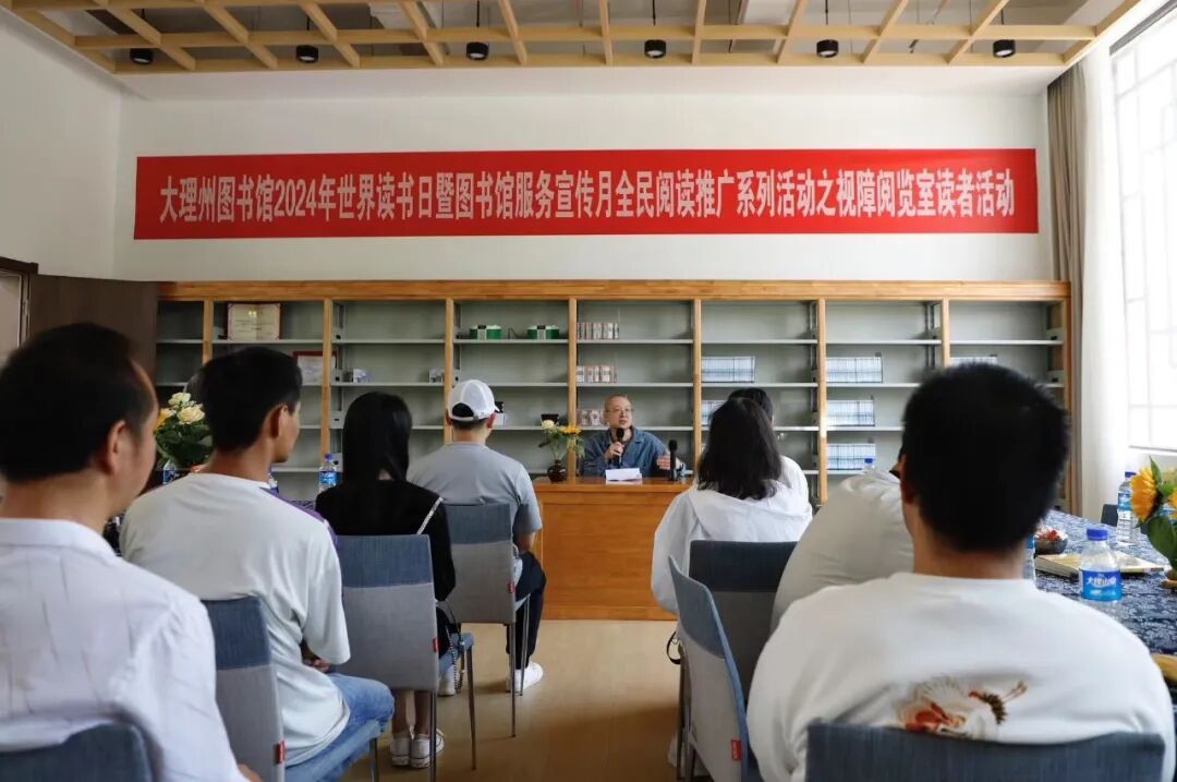 活动中,6位视障人士朗诵分享自己喜欢的古诗词。州图书馆馆长及大理大学教授等人员也进行了诗歌解读分享。