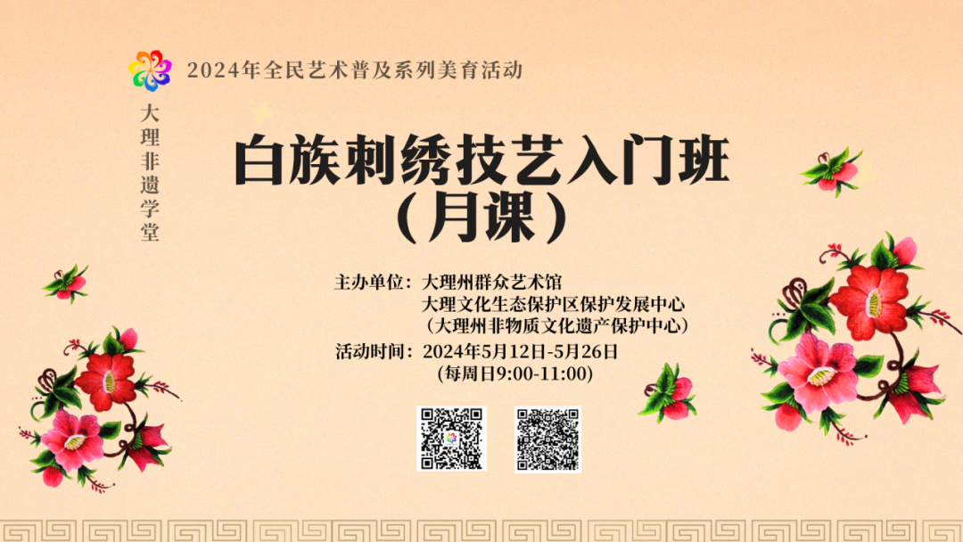 为深入学习宣传贯彻习近平新时代中国特色社会主义思想和党的二十大精神,全面贯彻习近平文化思想和习近平总书记关于文化建设的重要论述精神,根据《文化和旅游部办公厅关于组织开展2024年公共图书馆、文化馆服务宣传周活动的通知》精神,大理州群众艺术馆结合工作实际,积极围绕人民群众对文化生活的多样化、多层次、多方面需求,以线上线下相结合的方式深入开展文化馆服务宣传推广。现将5月群众文化系列活动预告如下,欢迎大家关注!