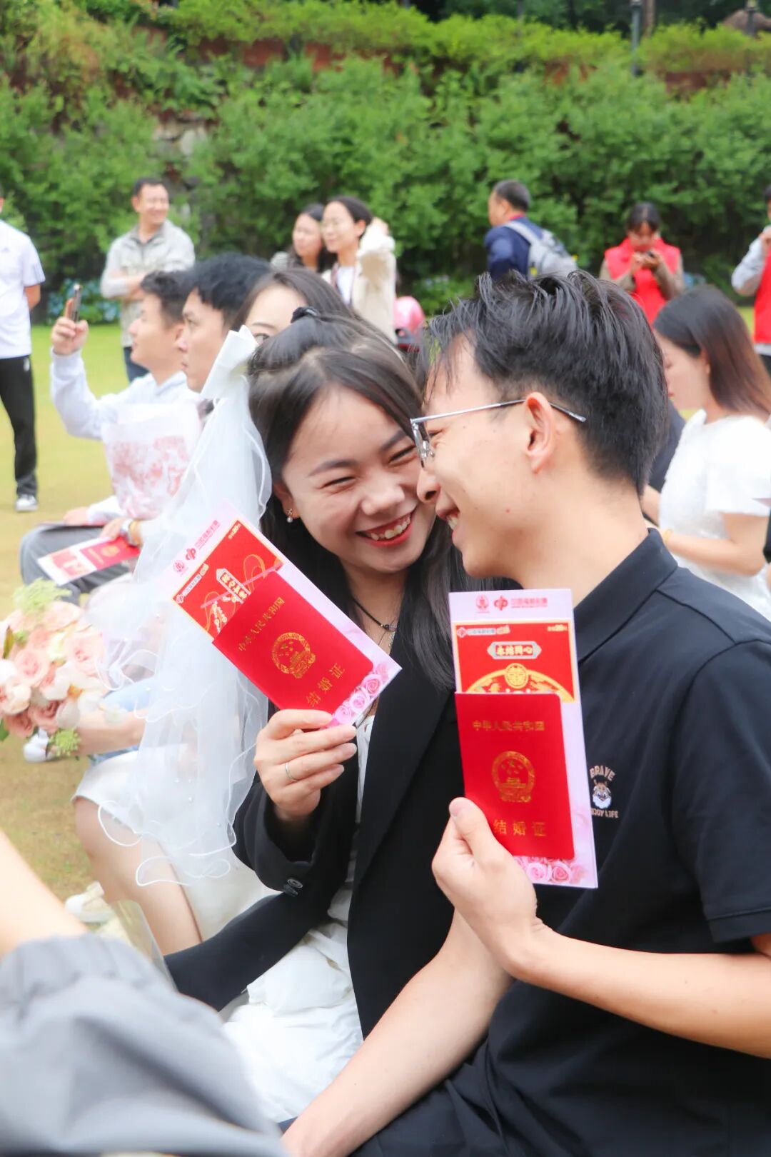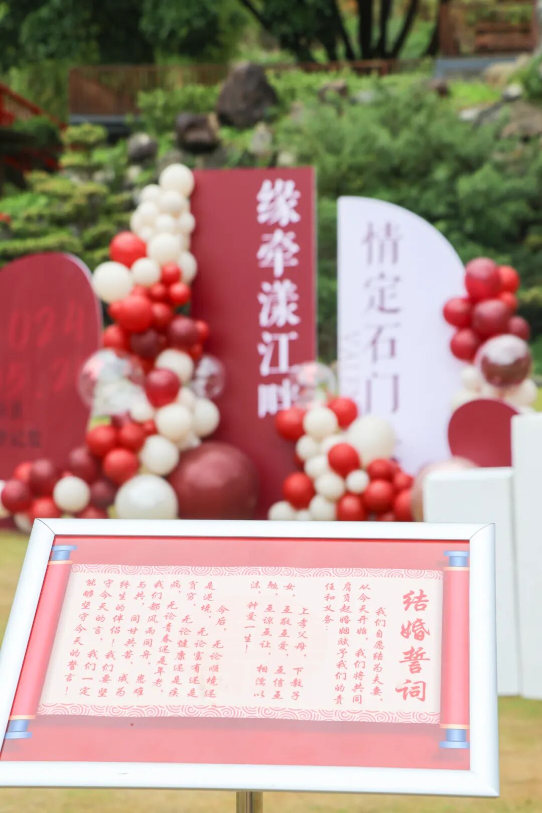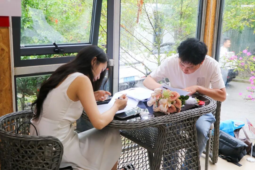 “我们自愿结为夫妻,共同肩负起婚姻赋予的责任和义务……”当天上午,在“山水之恋”伊甸园户外颁证点,新人深情宣读结婚誓词,接过与会嘉宾领导颁发的结婚证书,在大家的见证祝福下开启婚姻之旅。