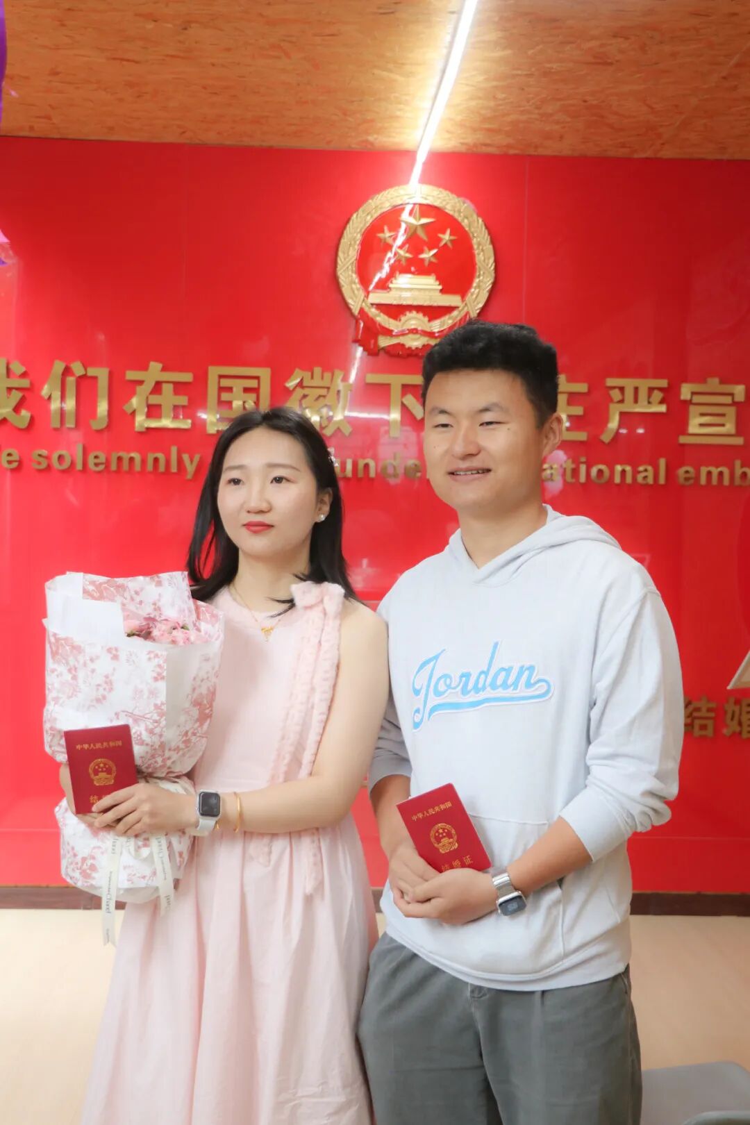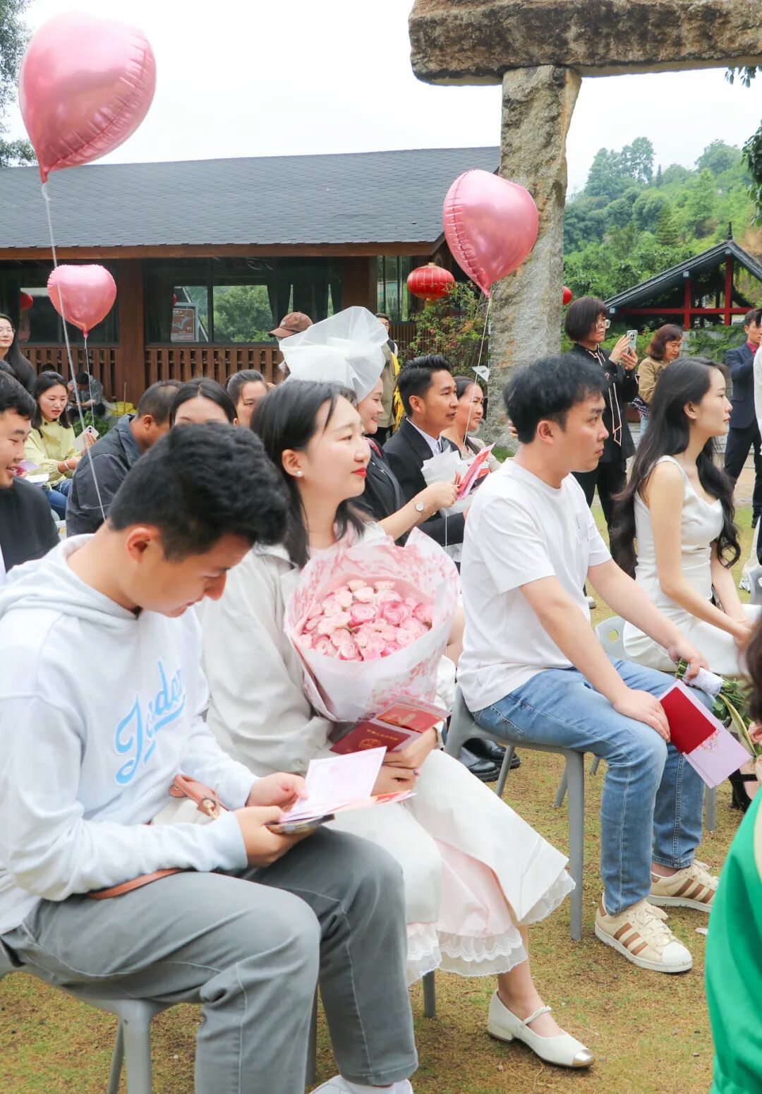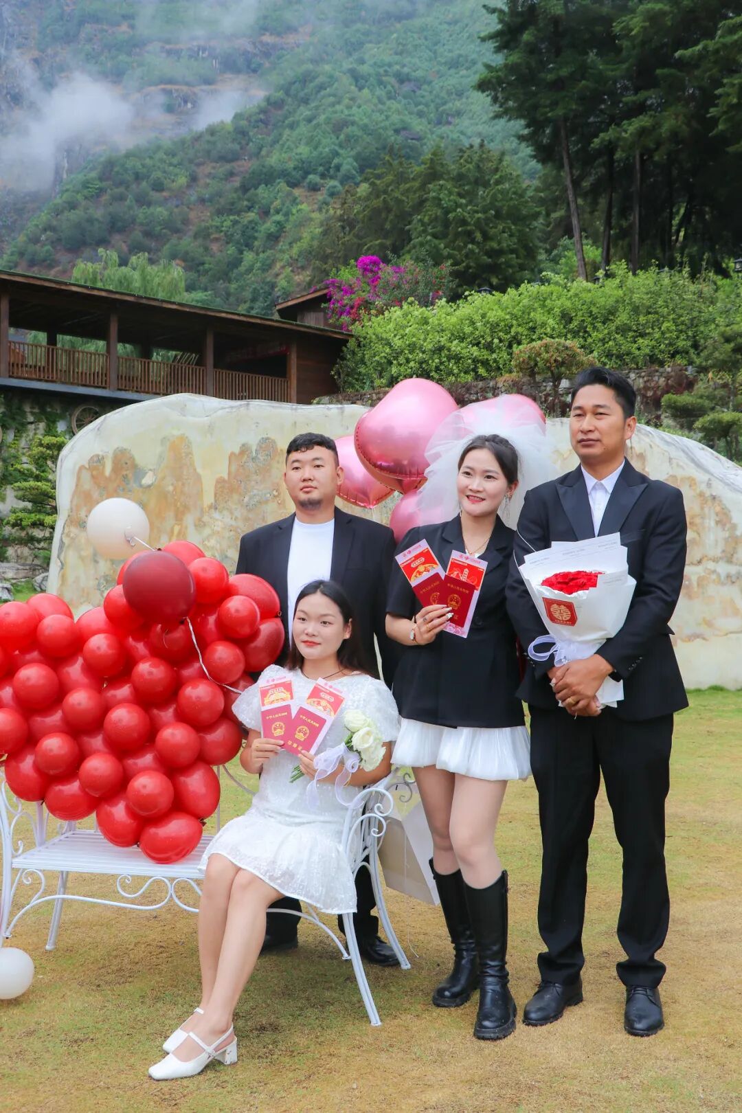“我们自愿结为夫妻,共同肩负起婚姻赋予的责任和义务……”当天上午,在“山水之恋”伊甸园户外颁证点,新人深情宣读结婚誓词,接过与会嘉宾领导颁发的结婚证书,在大家的见证祝福下开启婚姻之旅。