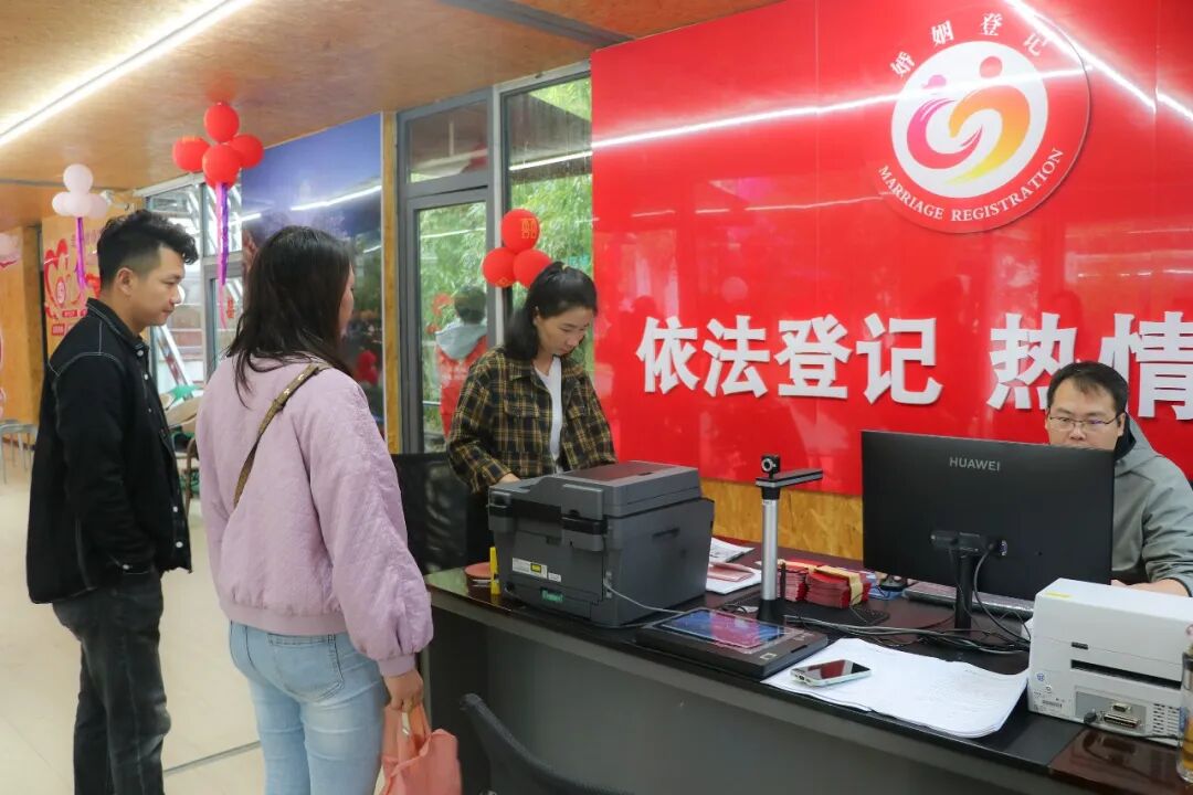 随着经济发展和社会进步,当下年轻人越来越喜欢与众不同、富有特色且极具个性的婚姻登记方式,并在婚姻登记时注入属于自己的浪漫情怀。为此,漾濞县民政局与大理石门关旅游区联手打造了位于4A级景区内的石门关婚姻登记点。将生态美学与政务服务相结合,在蓝天碧水、鸟语花香中为新人们提供特色化的婚姻登记服务。