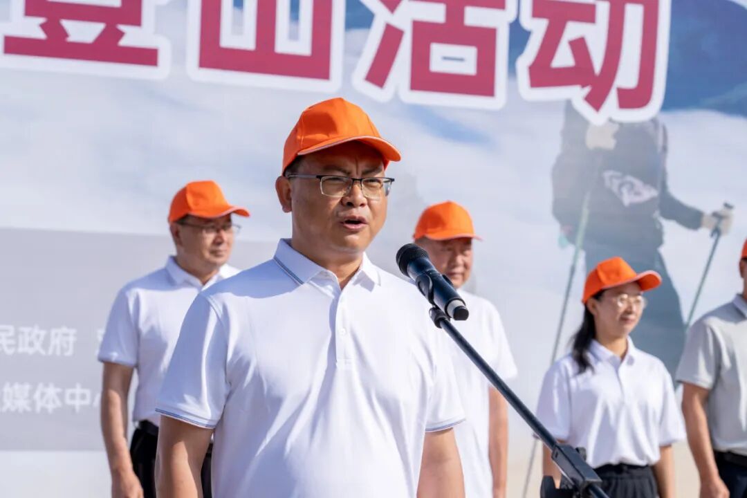(宾川县教体局体育股股长白建峰宣布此次徒步登山活动的竞赛规则)