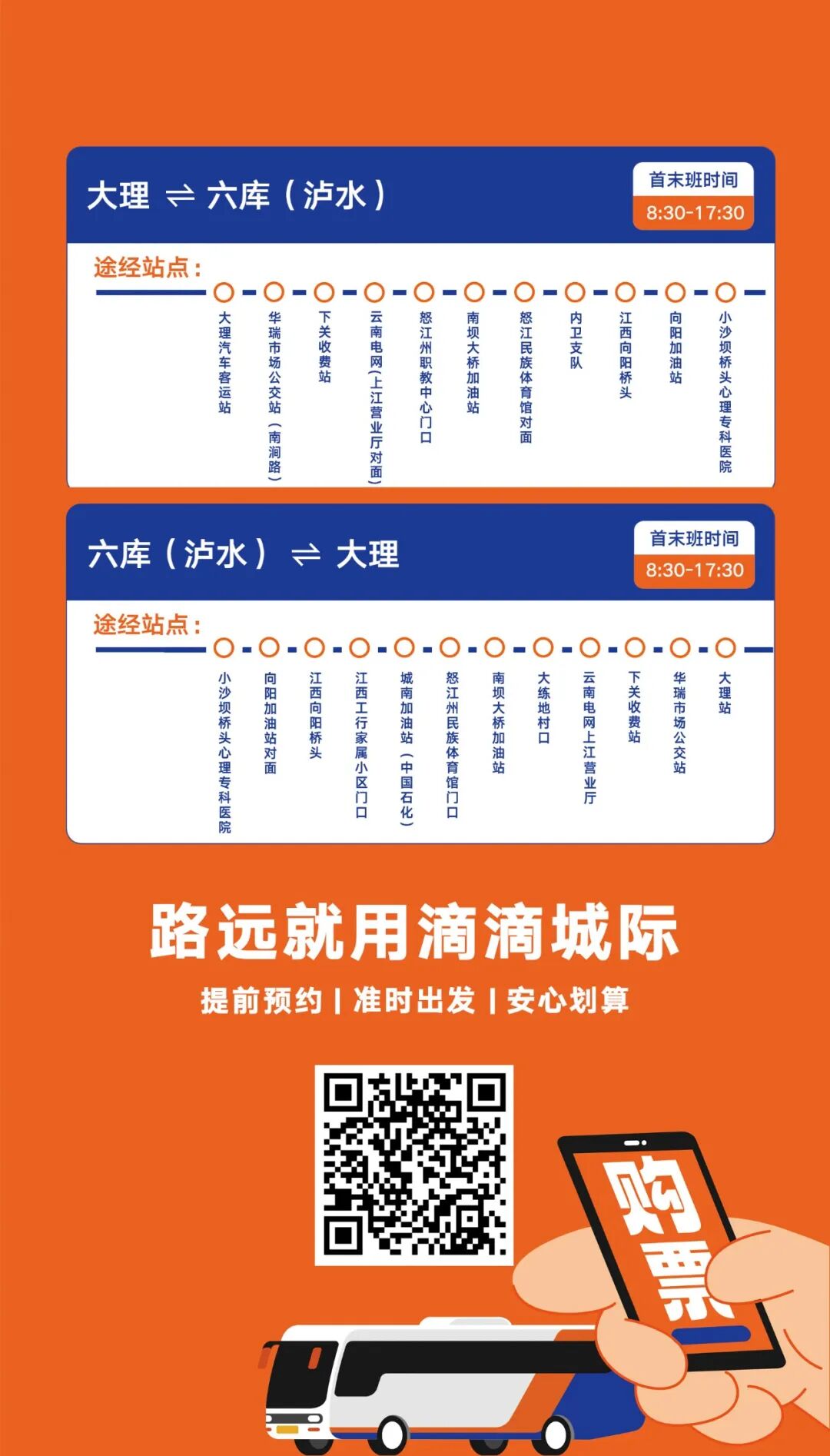 6月1日起,大理交运集团新增的大理往返怒江站点巴士线路开通运营啦!