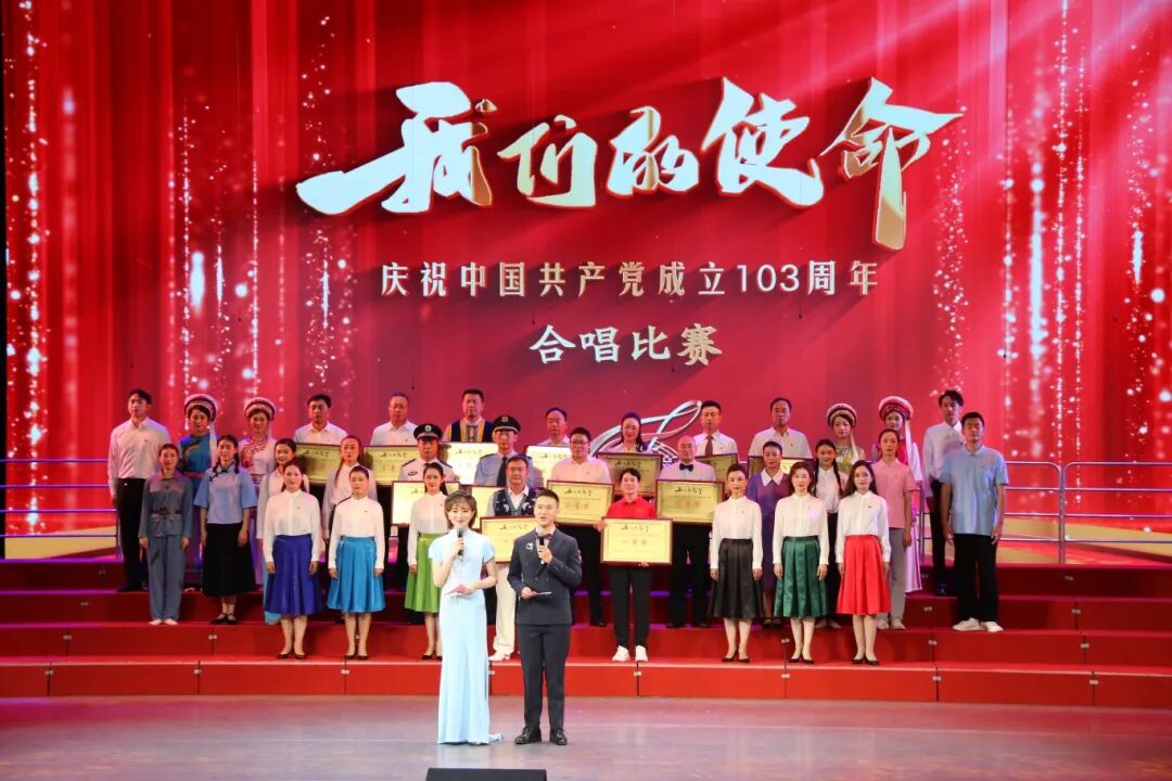 动人的歌声震撼人心,响亮的回音激荡如潮。经过各支合唱队的激烈角逐和评委们的评审,“我们的使命”庆祝中国共产党成立103年周年合唱比赛,共评选出一等奖2名,二等奖4名,三等奖7名。