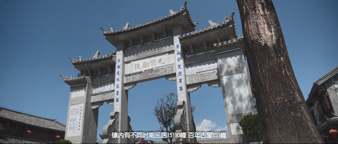 镇内有不同时期民居15110幢,百年古屋151幢。明朝时有杨士云的“七尺书楼”,清朝有赵廷俊大院,民国时期有董澄农大院、严子珍大院、杨品相大院、尹隆举大院等。特别是建于二三十年代的“杨家院”“董家院”,在保持传统“三坊一照壁”“四合五天井”格局和石作、木作、彩画工艺的同时,吸收了江南及西方民族建筑的装修艺术,构成了奇特的建筑艺术风貌。这些民居雕梁画栋、斗拱重叠、翘角飞檐、门楼、照壁、山墙的彩画装饰艺术绚丽多姿,充分体现了白族人民的建筑才华和艺术创造力,曾被著名作家老舍先生盛赞为“奇迹”。