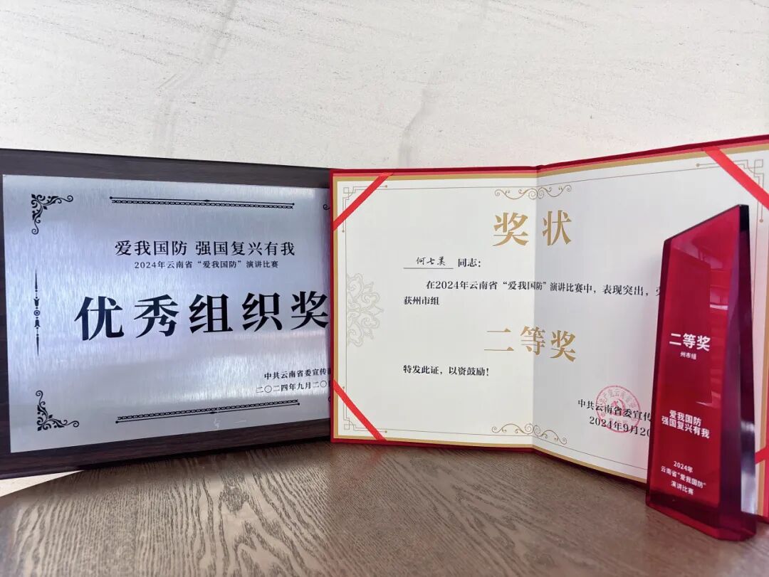 9月20日,2024年云南省“爱我国防 强国复兴有我”演讲比赛颁奖典礼暨汇报表演在云南广播电视台举办,大理州博物馆讲解员何七美荣获州市组二等奖,大理州委宣传部荣获优秀组织奖。
