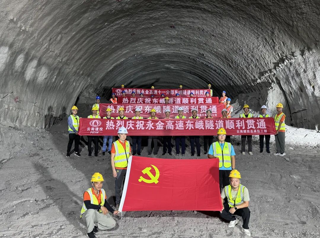 9月25日,永仁至金水河高速公路项目大黑山隧道左幅顺利贯通。大黑山隧道为永金高速主要控制性工程,左幅长1035米,右幅长1055米,最大埋深68.46米。