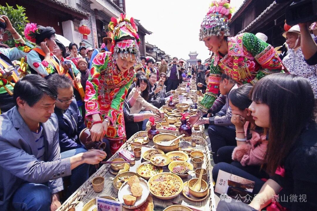 中华美食荟·好味云南——第十一届中国大理巍山小吃节于2024年3月16日至3月24日举行,共举办文艺展演类、体育竞技类、美食品鉴类、诗书诵读类、签约推介类以及铸牢中华民族共同体意识座谈会等44 场活动。中国烹饪协会牵头邀请的18个省区市参展商户50户,以及来自云南省内各州市、县市参展商户596户,共646户参展商户在巍山小吃节5大展区参加全国名特小吃展。第十一届中国大理巍山小吃节期间,共接待海内外游客16.09万人次,同比增长30.28%;实现旅游总收入1.86亿元,同比增长101.52%。巍山以节造势、以节聚人,“人间烟火在巍山”的文旅IP出圈出彩,节庆文化活动成为巍山旅游经济发展的助推器,让巍山的“烟火气”持续升腾。