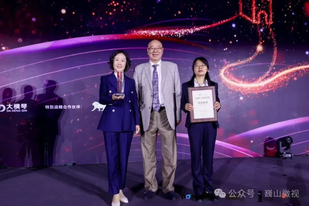 国家文旅部黄河文化经济研究会会长、国家旅游局原综合协调司司长张坚钟,北京市东城区文旅局原局长、文旅部公共文化交流中心乡村公共文化研究院专业委员会委员李雪敏为获奖单位颁奖,县人民政府副县长周婵媛代表巍山县上台领奖。