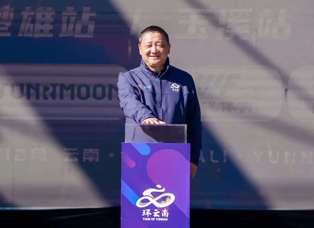 国家体育总局自行车击剑运动管理中心副主任、中国自行车运动协会副主席冯宝忠出席开幕式并致辞,云南省体育局局长杨中华宣布比赛开幕,中共大理州委书记杨国宗为环云南奖杯揭幕。