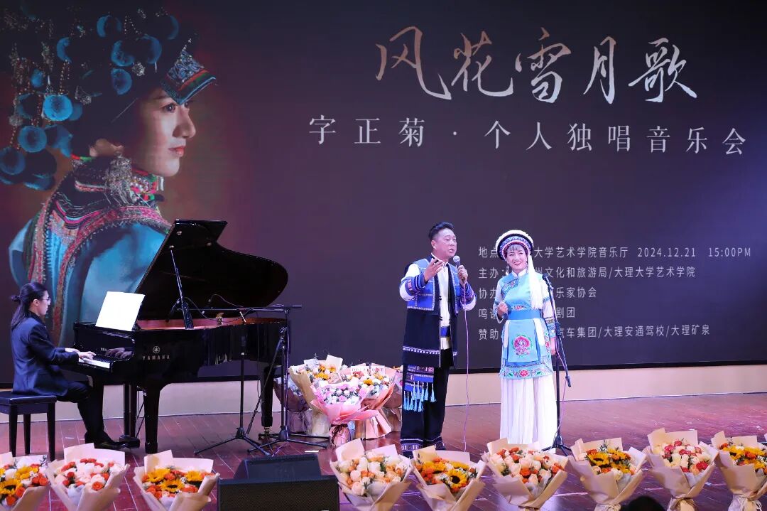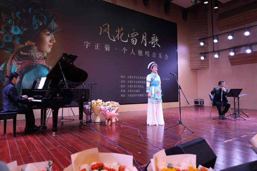 12月21日正值冬至,雨后初霁,大理大学艺术学院音乐厅雅韵悠扬、歌飞苍洱,“风花雪月歌”字正菊个人独唱音乐会在此开演。