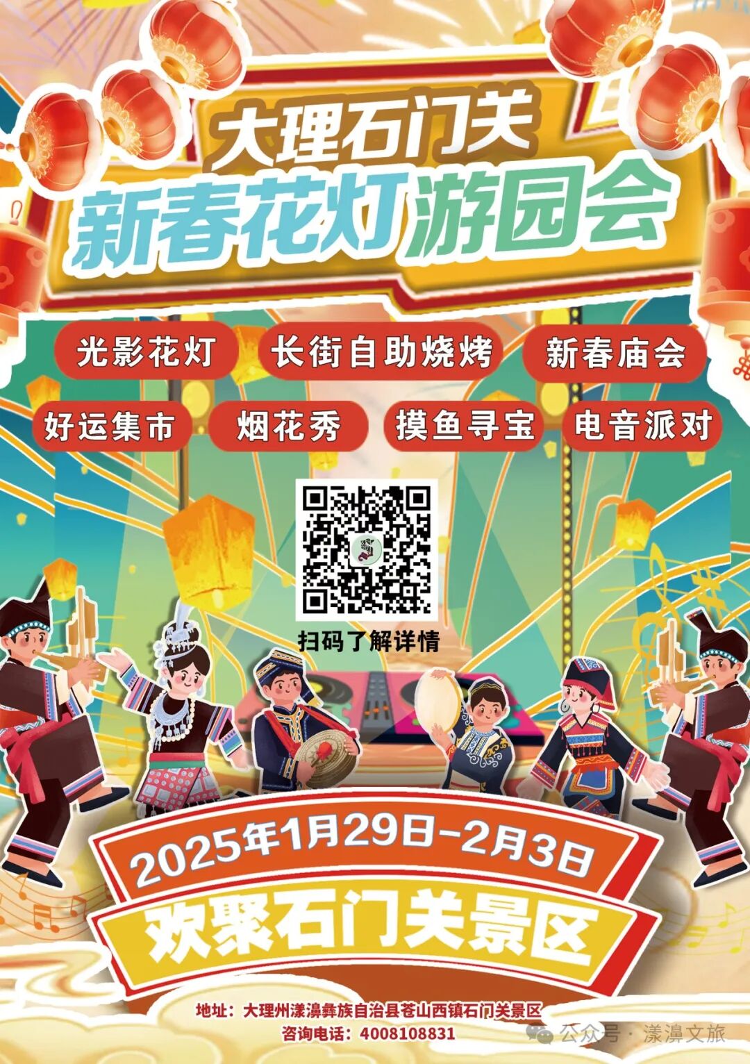 为深入践行“有一种叫云南的生活”理念,向世界展现云南独特的自然之美、人文之韵和生活之趣。石门关景区以“石门山水画卷,共度新春佳节”为主题,打造独具民族特色的新春花灯游园会。景区将以光影花灯,点亮梦幻石门;国风舞台,演绎少年风华;民族风情,增添节日喜庆;好运市集、民俗宝藏探索等丰富多元的体验满足游客个性化的需求。值得一提的是,此次新春花灯游园会期间还将举办云南“巅”峰赛民族打跳和电音派对狂欢夜,将电子音乐与传统节庆相结合,游客可以沉浸式体验热烈欢快的民族舞蹈,感受独特的民族文化魅力。