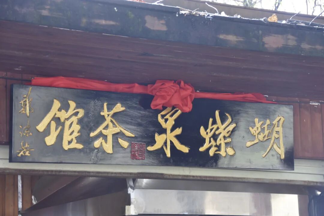 蝴蝶泉茶馆旁,游客们围坐在一起,品茶聊天,享受悠闲惬意的时光。