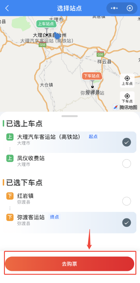 下车站点:设红岩镇、弥渡客运站2个下车站点。