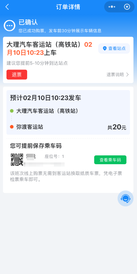 3.购票成功后,点击“查看乘车码”,乘车时向司机出示乘车码即可验票乘车。