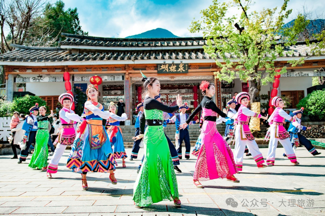 踏入景区,瞬间被欢快的节奏点燃!一诺传媒精心编排的白族歌舞快闪惊喜上演,身着盛装的姑娘们舞姿轻盈,恰似彩蝶翩翩,小伙们拨动三弦,奏响欢快乐章。从霸王鞭的铿锵到八角鼓的灵动,每一个音符都在诉说白族的热情,随手一拍都是民族风情大片!