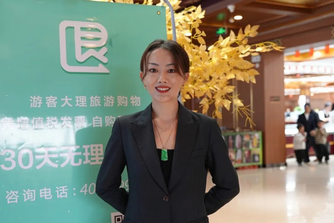 大理市蝶翠缘商贸有限公司 销售部经理 李艳元:我们严格按照相关要求,谢绝导游入内。客人消费的每一笔,我们都是主动开具发票给客人,承诺30天无理由退货,让客人买得放心、购得安心。同时,根据之前客人反馈的反感“一对一”问题,我们现在是杜绝“一对一服务”,让客人随意挑选,有需要我们的导购再进行服务,从而提升购物体验。