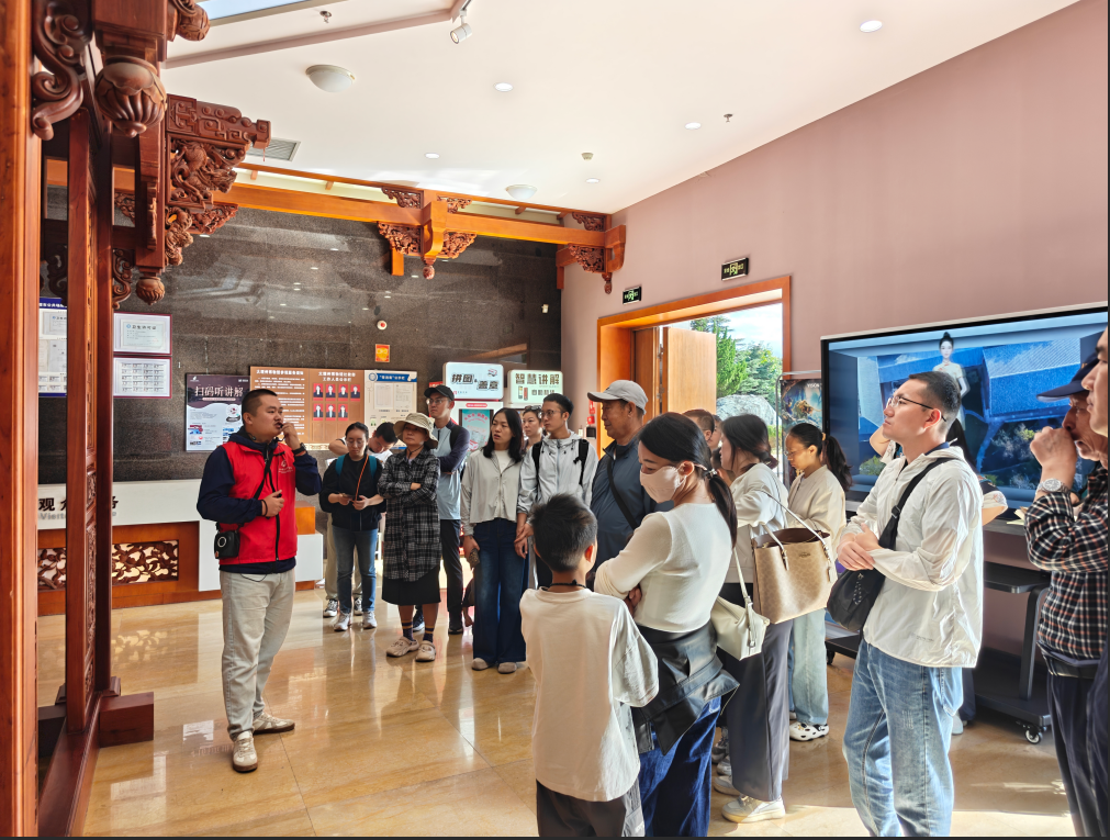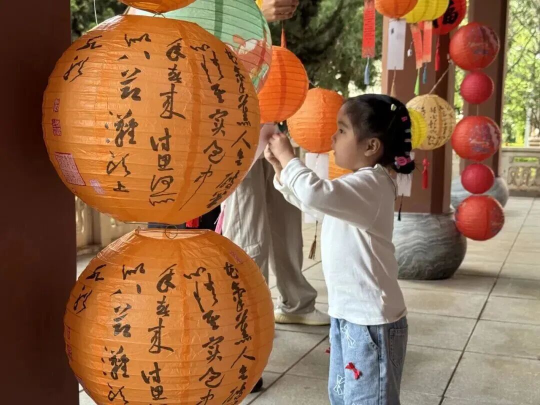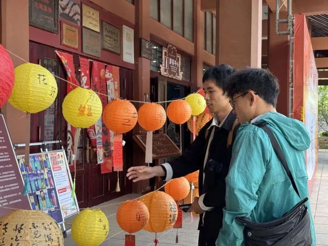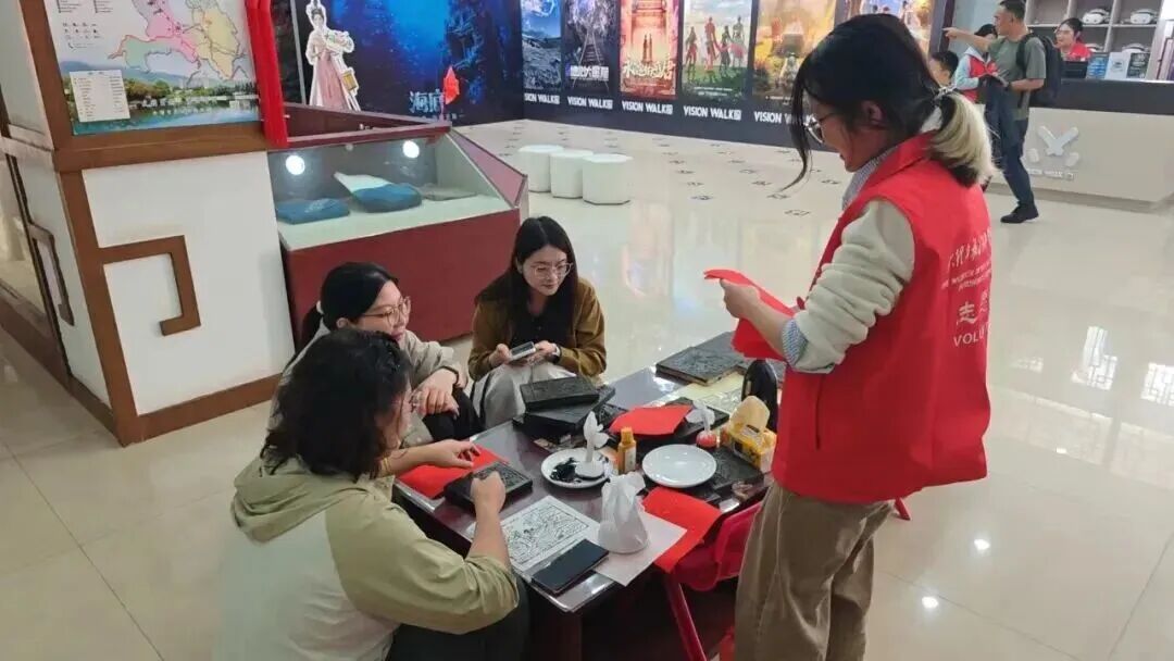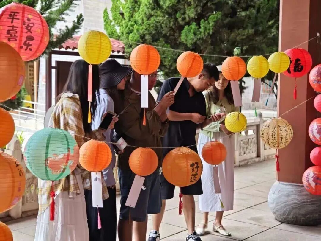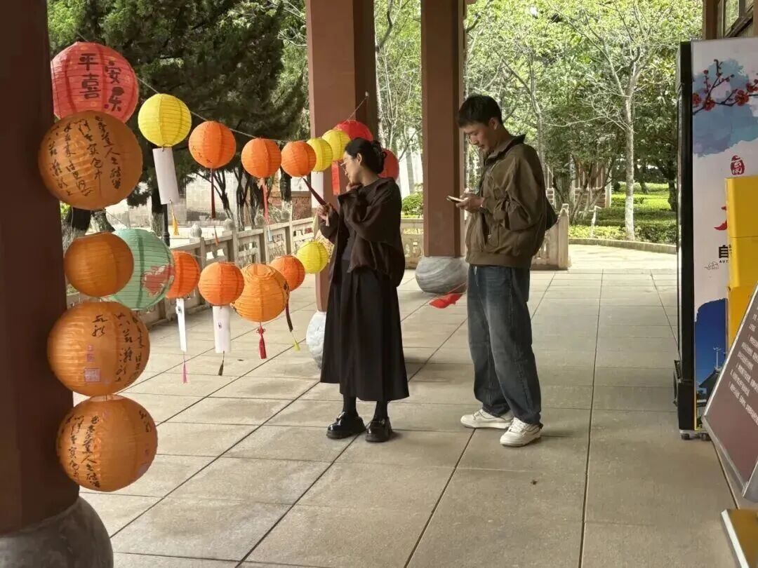 中秋节活动期间,猜谜区域人气火爆,游客们或仰头读谜,或交头讨论,现场气氛热烈。他们拿着谜面到问询台答谜,答对后欣喜地接过印有馆藏文物的集章卡。特别设计的灯谜融合了南诏大理国历史、文物与中秋文化,让游客在趣味竞猜中增进对大理文化的了解,传统佳节更添知识韵味与雅趣。