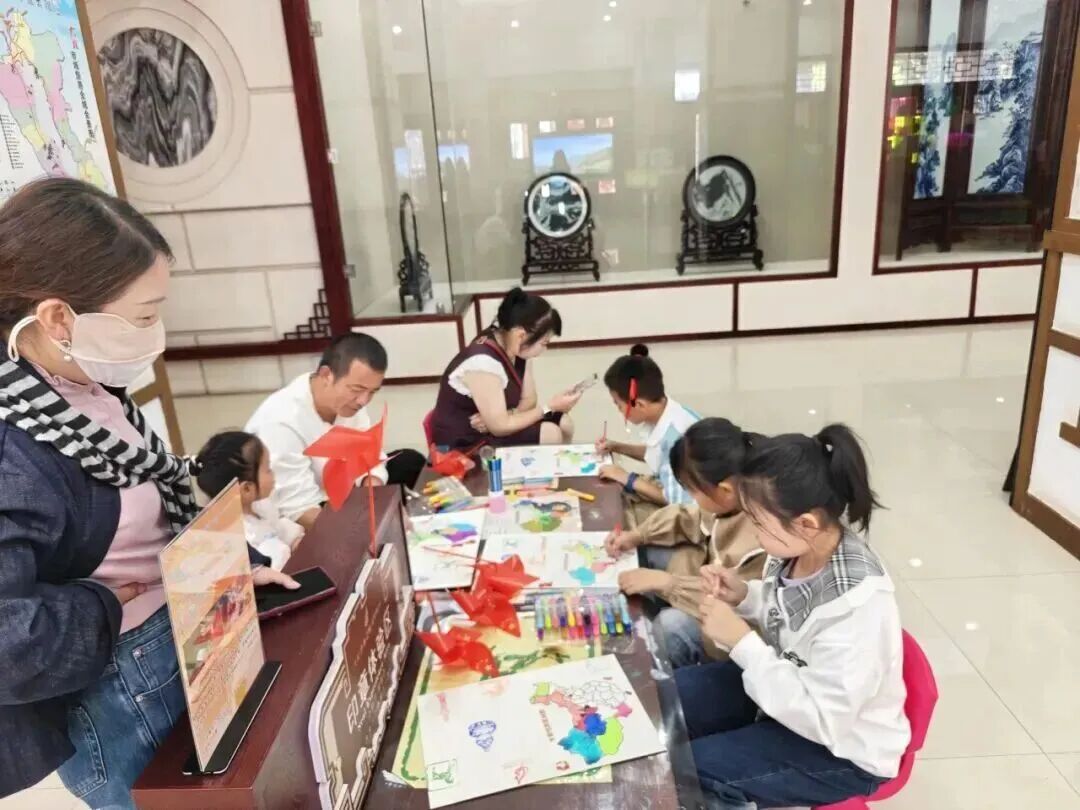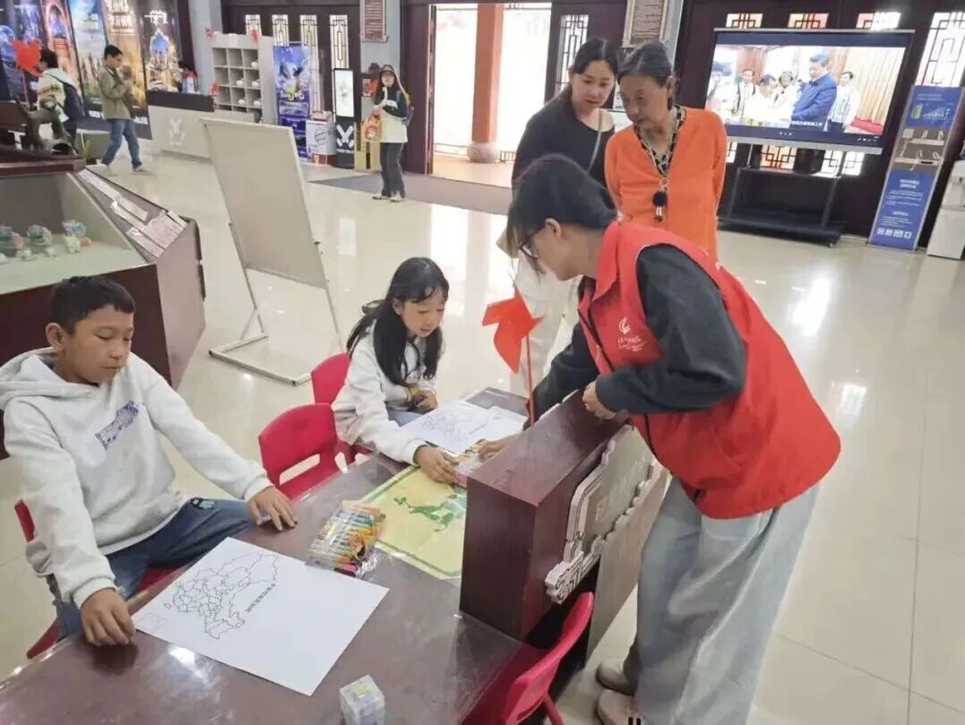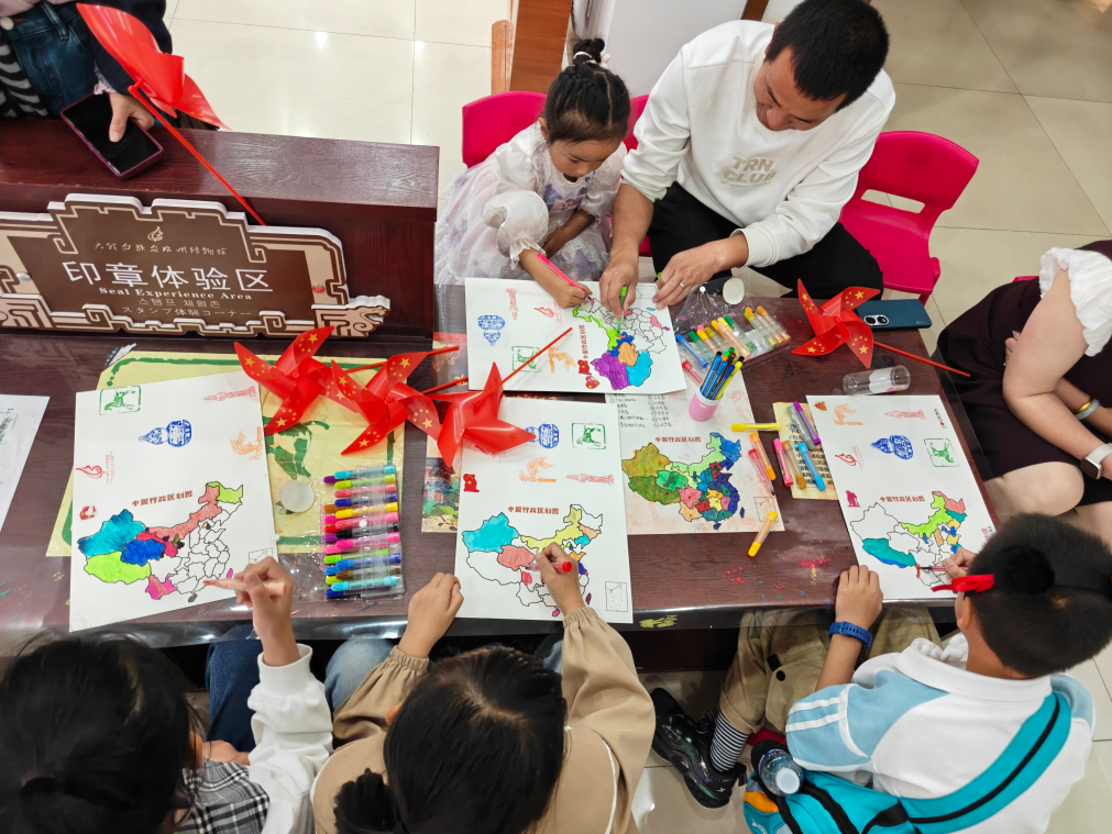 十多天的活动现场洋溢着孩子们的欢声笑语,“中华民族一家亲”绘画区成为创意迸发的快乐天地。小朋友们或低头专注涂色,或兴奋地挑选贴纸,小手认真盖下一个个文物印章。绘画材料包将南诏大理国文物元素与中国地图巧妙融合,在轻松互动中传递“中华民族一家亲”的深刻内涵,让文化认同的种子在稚嫩心灵中悄悄生根。