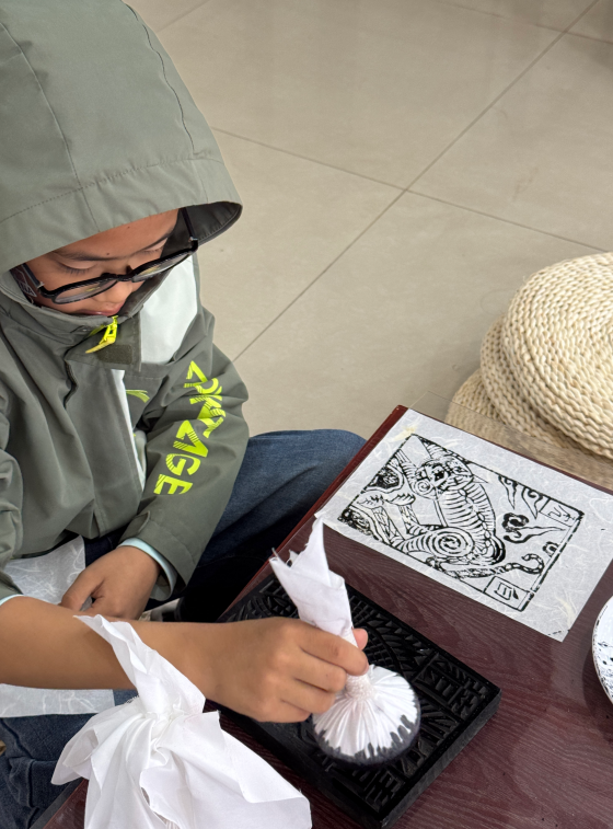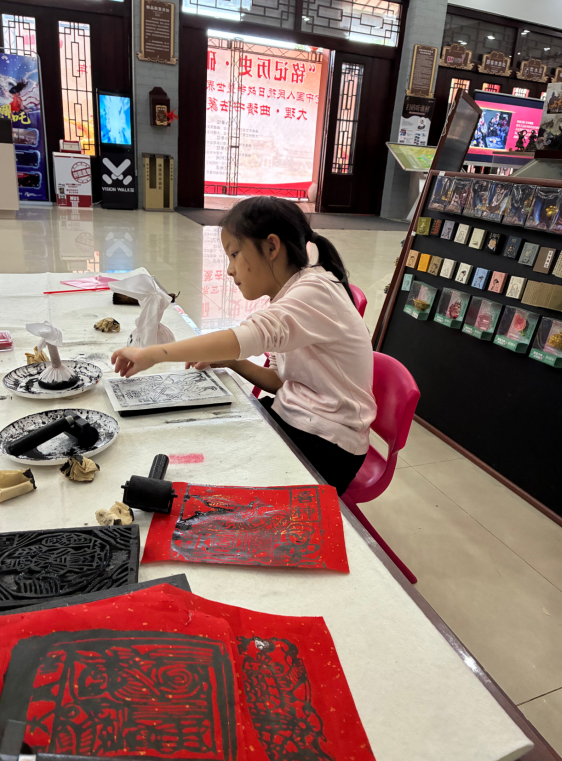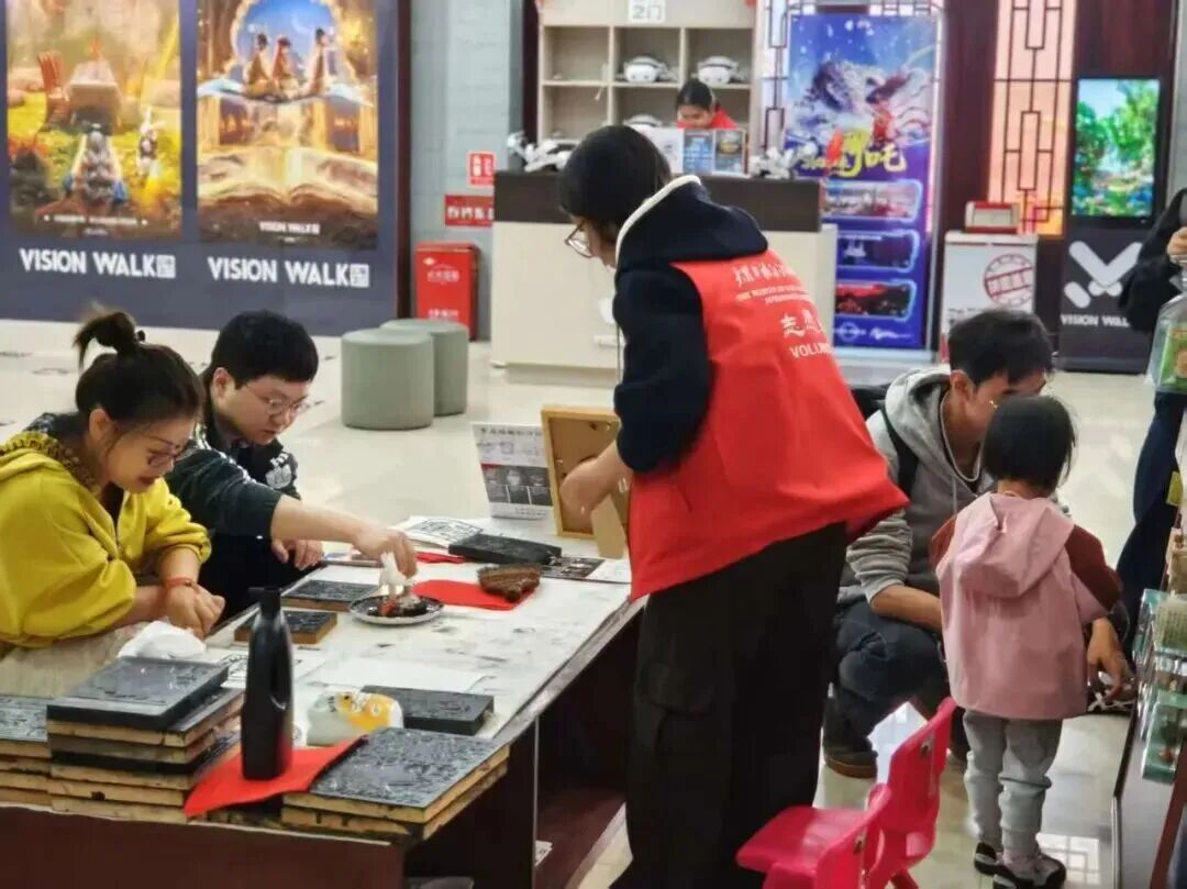 博物馆文创体验区散发着淡淡的墨香,游客们围坐案前,精心挑选心仪的甲马刻板,每一块都承载着时光的故事。参与者可自由选择喜爱的印板进行拓印,在工作人员指导下,大家亲手铺纸、施墨、拓印,当图案渐渐显现,惊喜之情溢于言表。这份亲手制作的非遗纪念品,让古老的甲马艺术在指尖重生,成为连接古今的独特记忆。