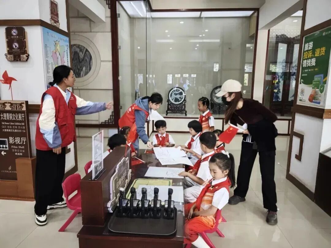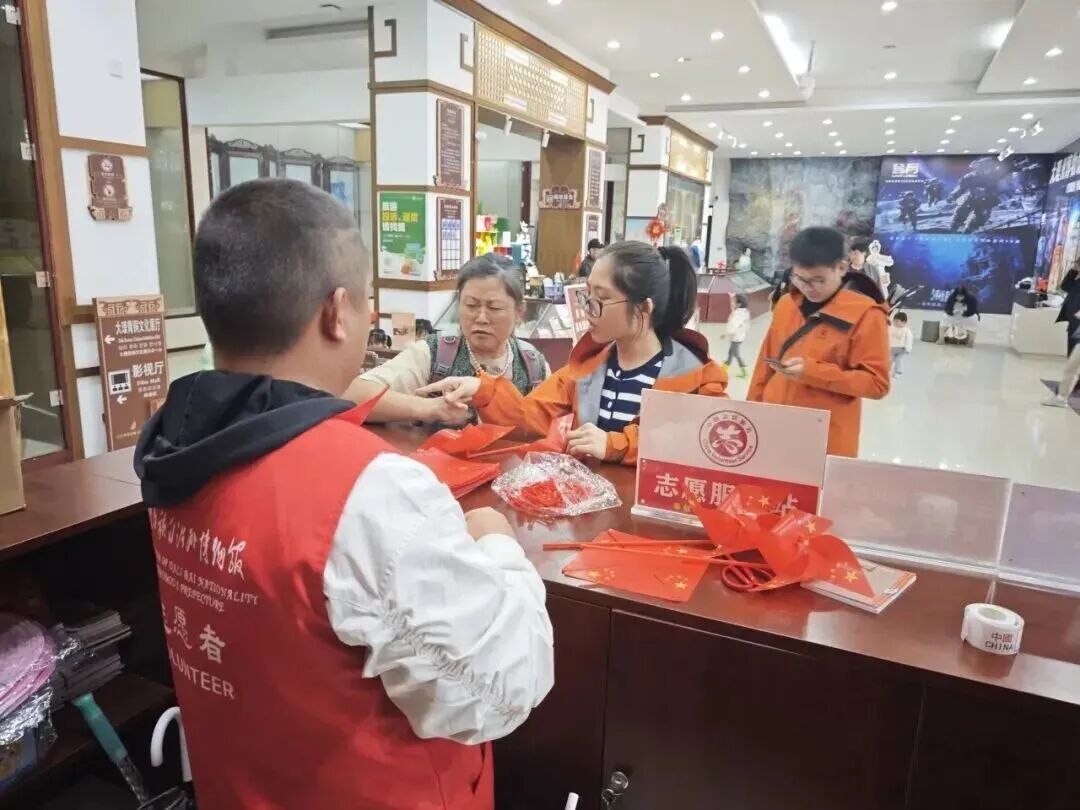 双节期间,每日两场公益讲解在通史展厅进行,共计开展了16场讲解服务。博物馆讲解员和大学生志愿者为千余名省内外观众带来关于大理历史文化专业而生动的历史解读。观众聚精会神,不时低声交流,在历史长河中流连忘返。讲解结束后,游客在服务台领取DIY五星风车材料包,不少家庭现场手工制作,风车随风轻转,为博物馆增添了一道红色风景。