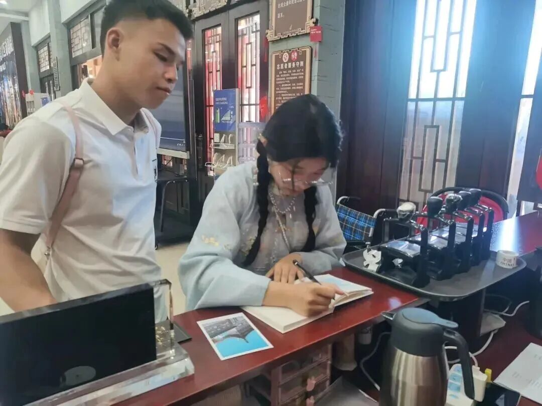 部分游客身着汉服与民族服饰,衣袂飘飘,步摇轻响,成为博物馆里一道亮丽的风景。他们在游客中心免费领取纪念卡片并在卡上集章留念,以今人着古衣的方式,于方寸衣冠间传承和弘扬中华优秀传统文化。