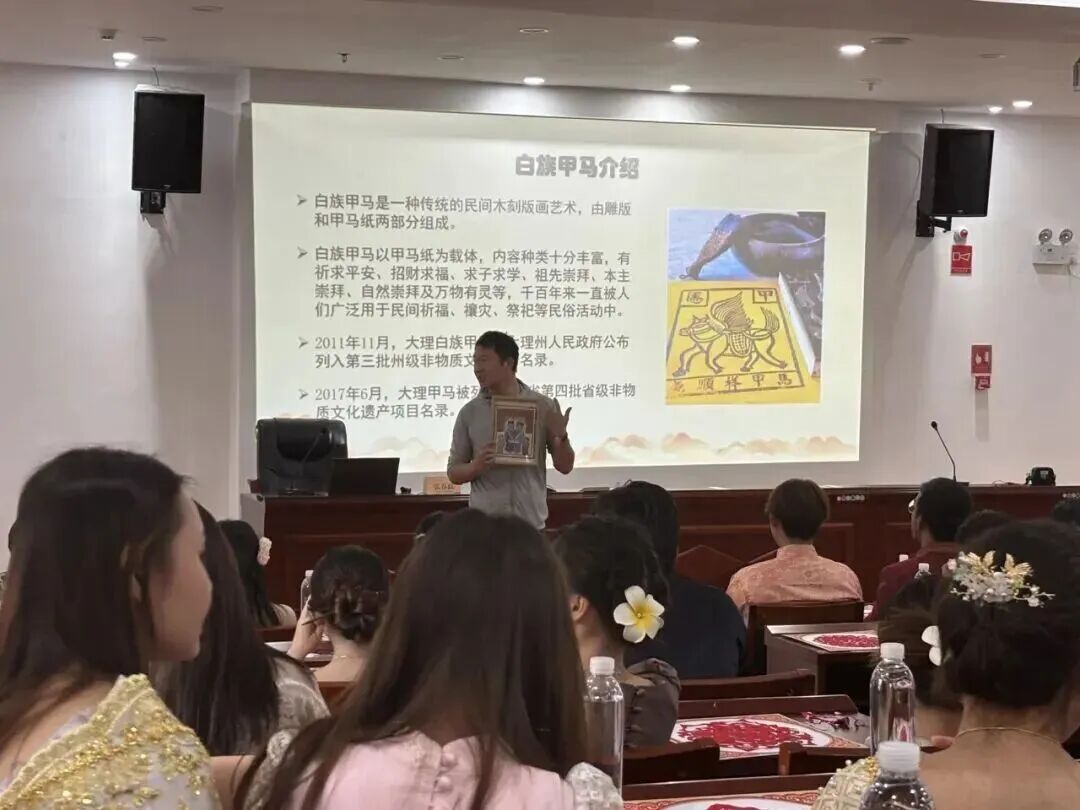 参观结束后,大理非遗项目代表性传承人在博物馆报告厅为留学生们讲解了剪纸和甲马的文化渊源,他们通过体验白族剪纸、白族甲马技艺,进一步了解了大理的民族文化和非遗,让本土文化得到更加广泛的传播和弘扬。