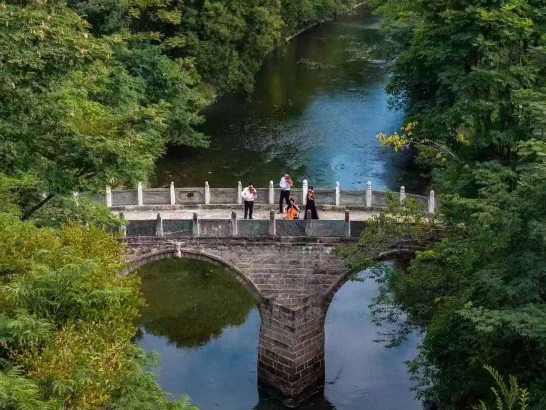 将鎏金般的碎光倾泻在青石桥栏上