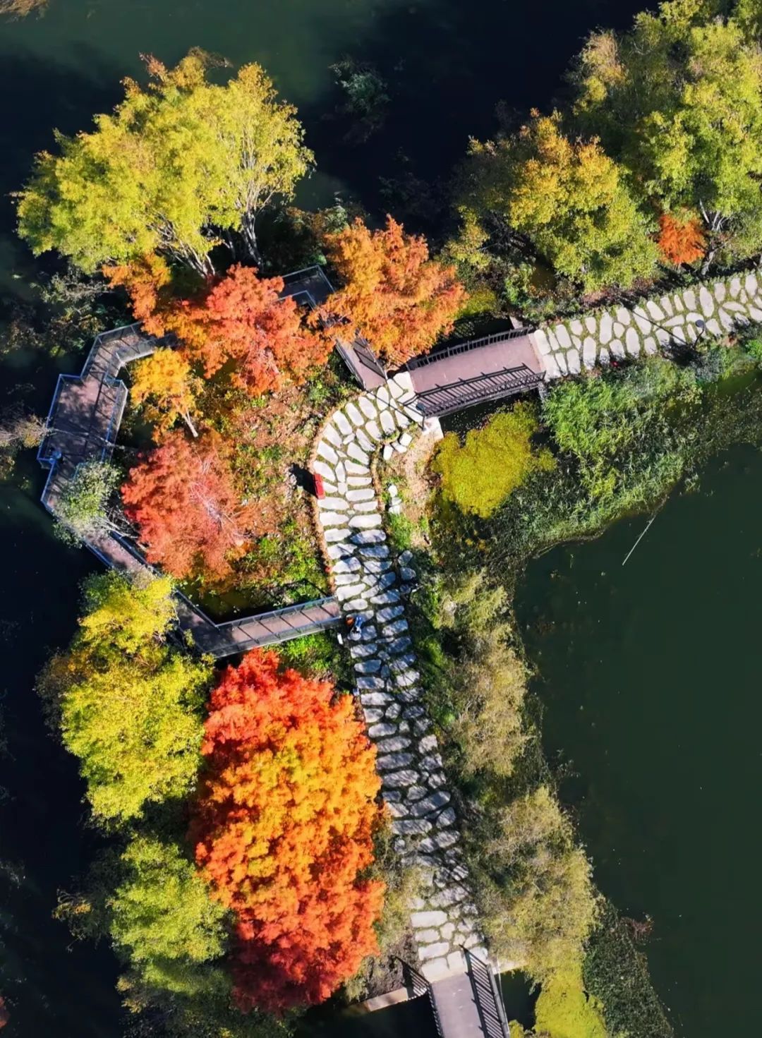 由翠绿渐变成了墨绿、淡黄、深红
