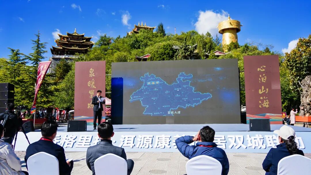 10月23日,“泉暖双城·心泊山海”香格里拉—洱源康养旅居双城联动活动在香格里拉独克宗古城月光广场启幕。