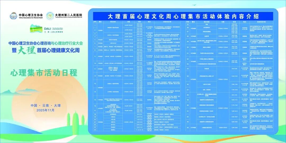 你是否渴望寻得一方宁静,释放内心积压已久的压力?是否期待与朋友们来一场充满趣味与默契的心灵互动?11月30日,中国心理卫生协会心理咨询与心理治疗行业发展大会暨大理首届心理健康文化周活动即将热力来袭,为你量身定制一系列精彩纷呈的心灵解压活动,快来一探究竟吧!