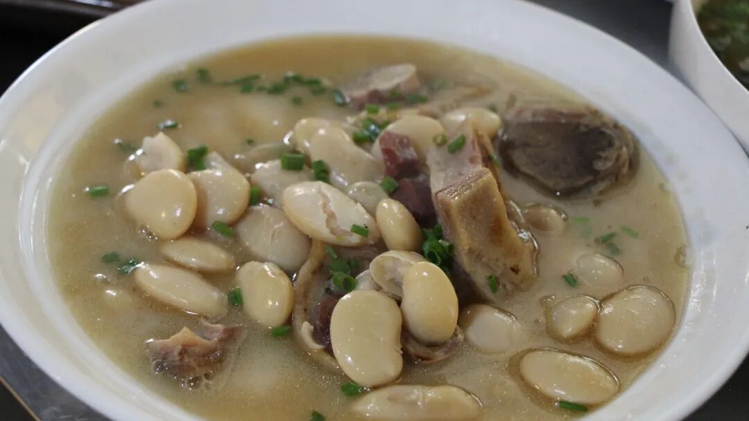 白芸豆炖火腿蹄是大理家常菜,火腿洗干净斩块,和泡发的芸豆先后放进砂锅,加姜片小火慢炖,直到猪蹄软糯、汤汁浓稠,吃着既补胶原蛋白又豆香十足。夹起一颗,轻轻一抿便化开在舌尖,火腿的嚼劲与芸豆的绵密交织,是大理人家餐桌上最踏实的慰藉。还有莲藕猪蹄芸豆汤、芸豆炖排骨等,豆子能中和肉类油腻,让汤品更醇厚清爽。