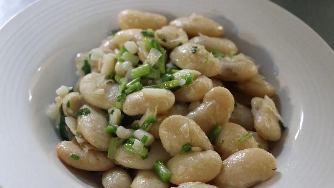 白芸豆焯水断生,与葱段、蒜末一同快炒,加盐调味即可。葱香扑鼻,芸豆脆嫩爽口,清淡不寡淡,是餐桌上的清爽配菜。