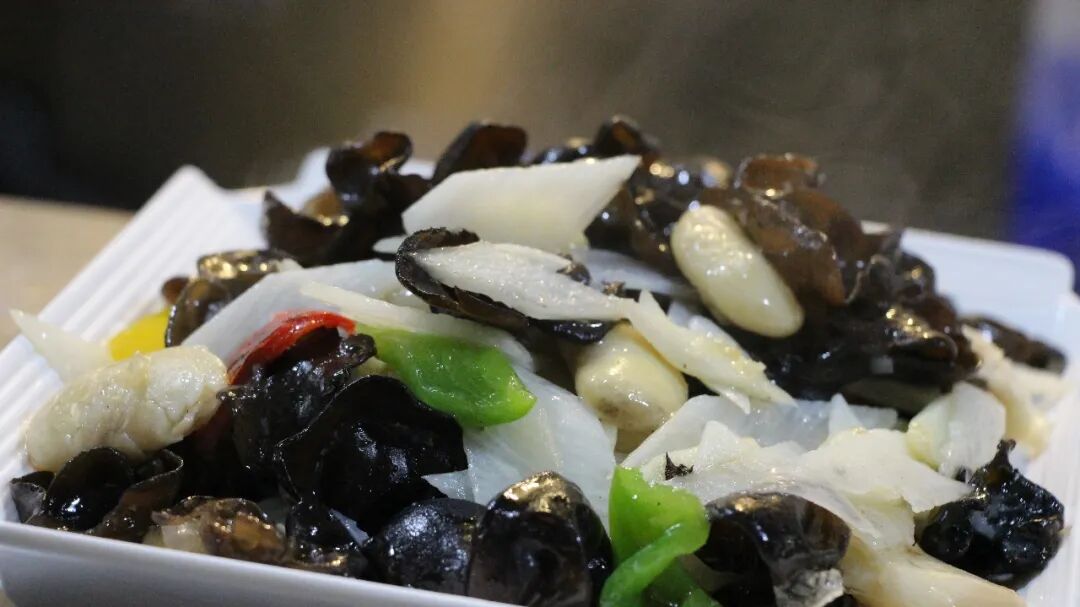 芸豆炒至微微焦脆,搭配木耳和山药的爽脆,口感清甜爽口。食材色彩丰富,口感层次分明,是老少皆宜的家常小炒。