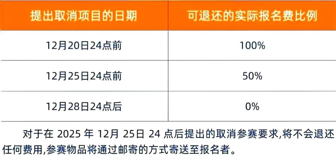 (2)退还的参赛费用将通过参赛者报名缴费时使用的渠道原路径返还,例如微信、支付宝、银行卡、信用卡等。