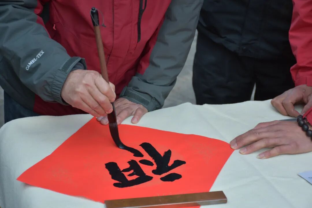 活动当天,宾川县文联组织书法艺术家开展写“福”送“福”活动。艺术家挥毫泼墨,将鸡足山美好寓意融入“福”字作品,赠予参赛徒步节活动人员,为活动增添文化底蕴,送上专属新年祝福。