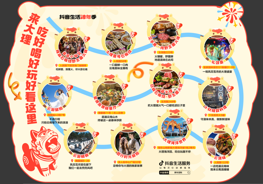 跟着打卡地图,玩转大理吃喝玩乐。到店消费解锁“到店有礼”福利,12月30日至1月3日,跟着地图打卡进店抖音下单,核销好礼款款送不停!