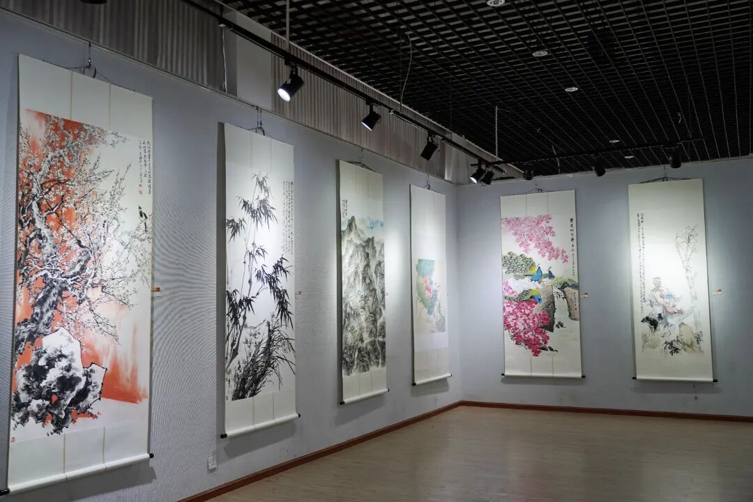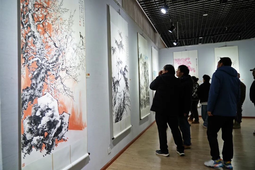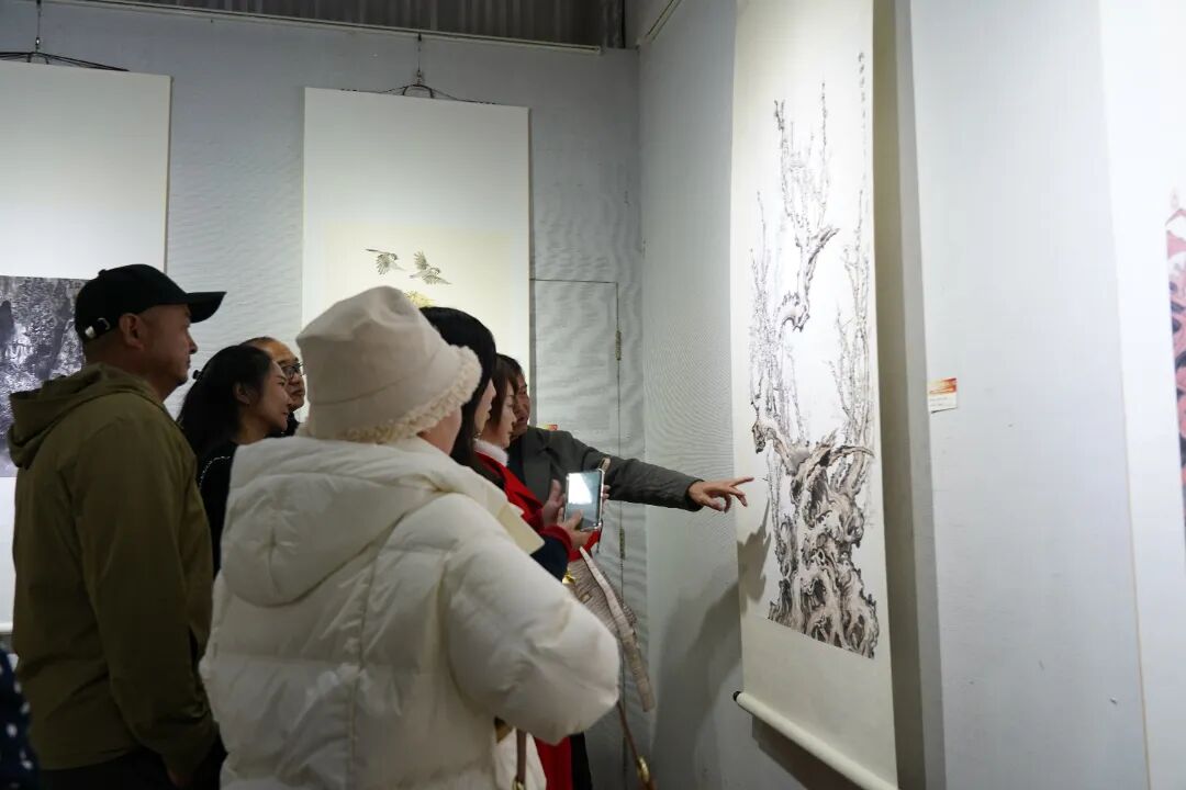 展厅内,人流如织,观众们在画作前驻足观赏,沉浸在艺术世界里。